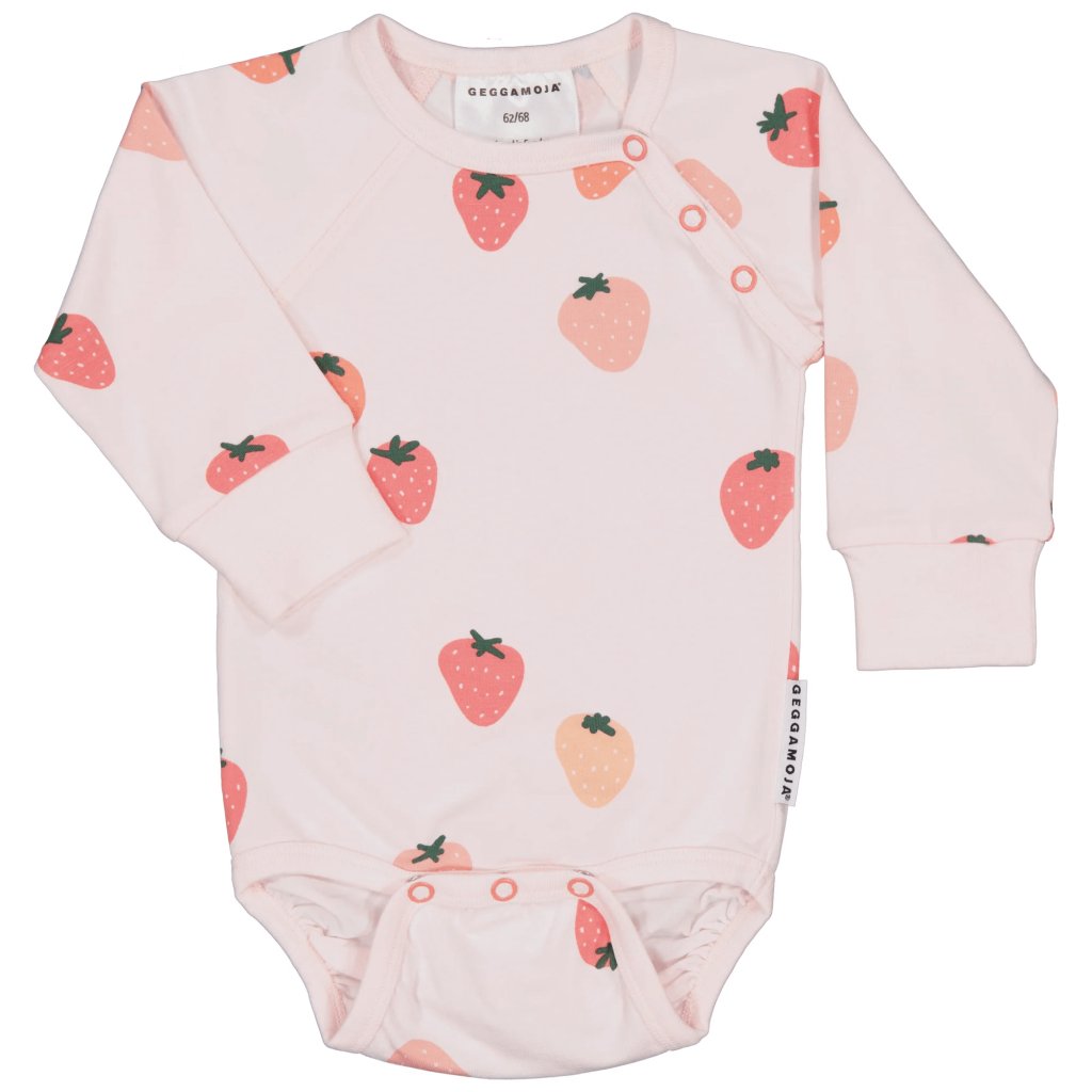 Bambusowe body dziecięce z długim rękawem Geggamoja - różowe Strawberry