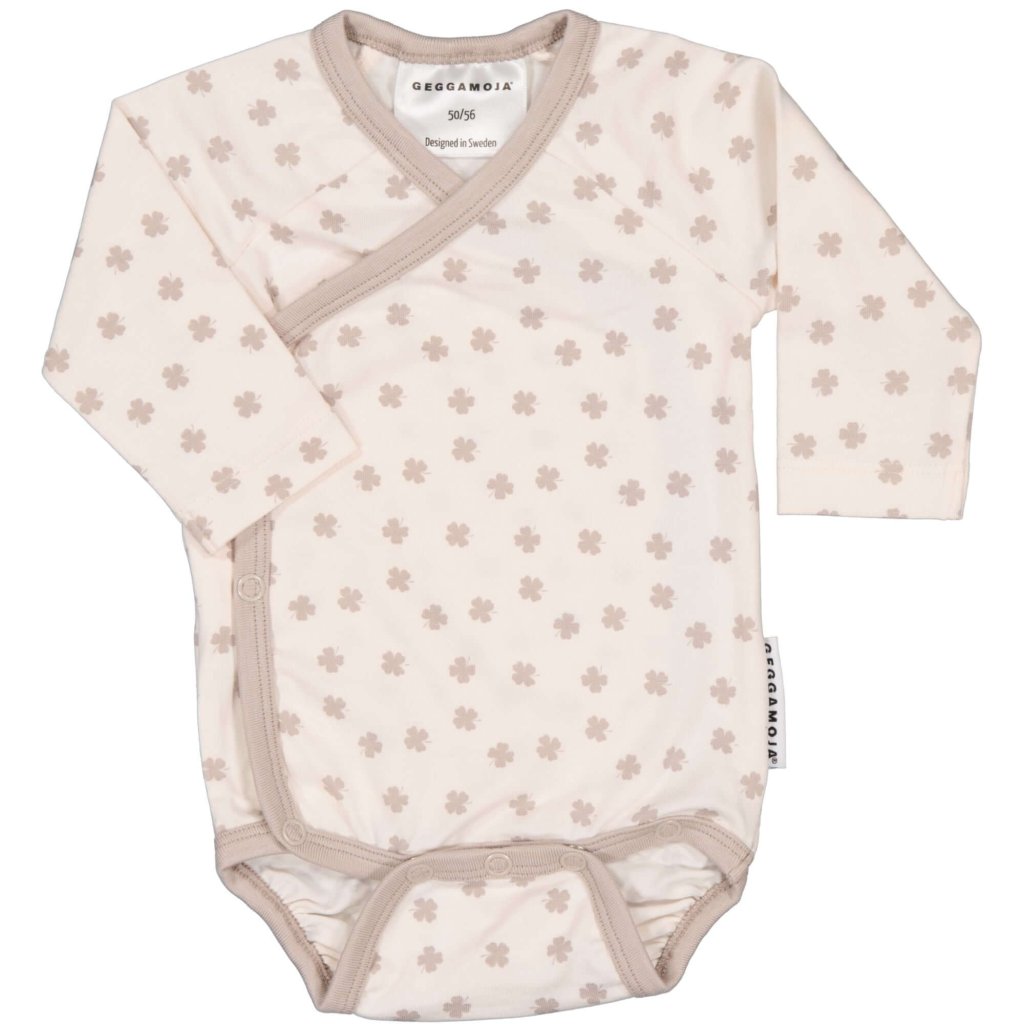 Bambusowe body niemowlęce kopertowe z długim rękawem Geggamoja - Beige mini clover