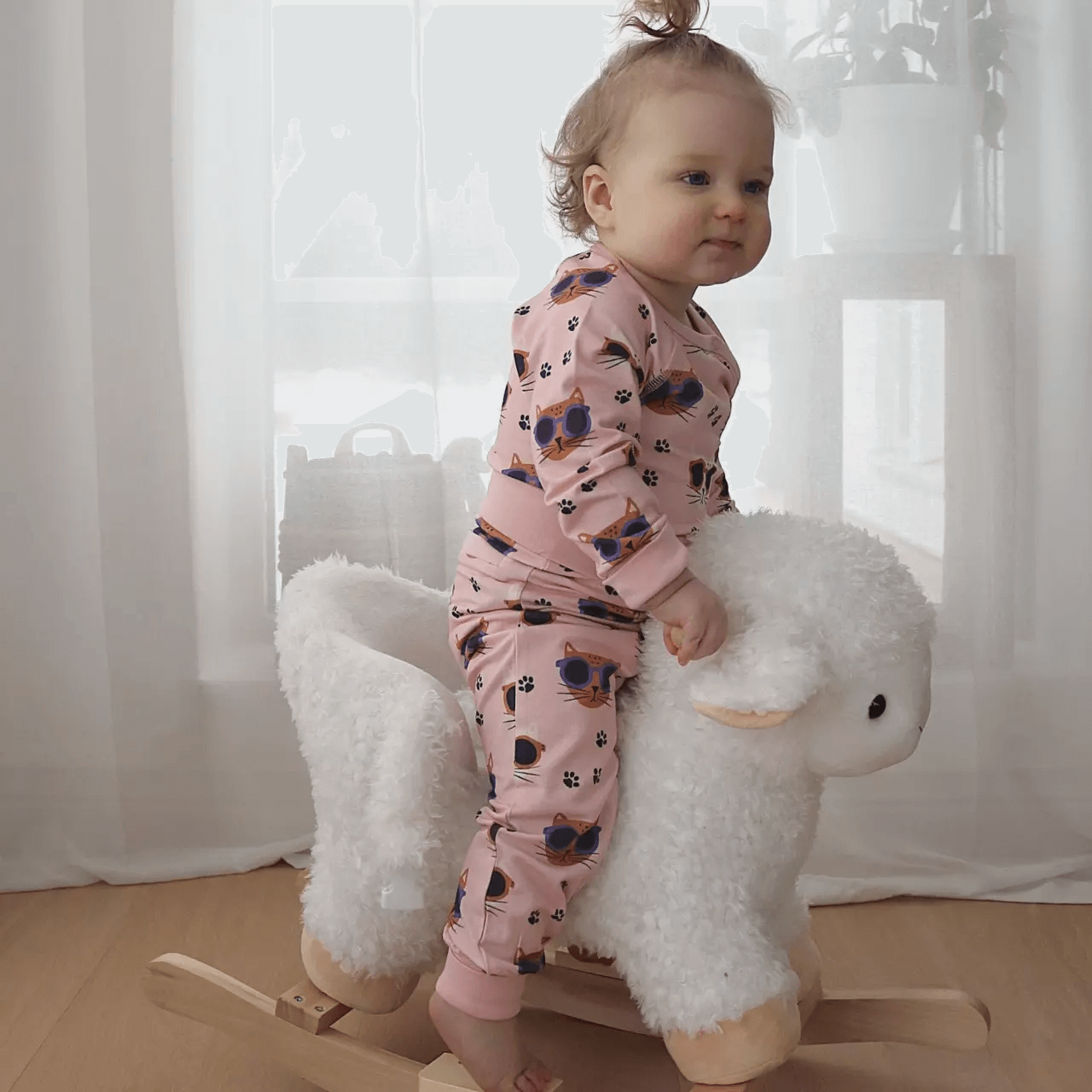 Bambusowe dziecięce spodnie z możliwością regulacji Pink Cool Cats Geggamoja