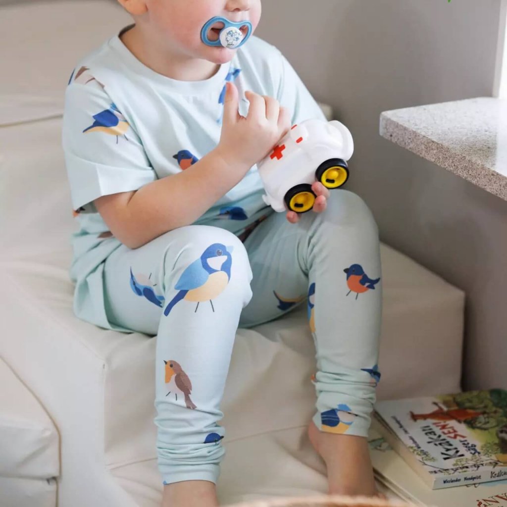 A jeśli chcesz stworzyć idealny komplet dla swoich najmłodszych z tej pięknej kolekcji Green Birds Geggamoja, polecamy dobrać do niej produkty z tym samym wzorem, takie jak dDziecięca bambusowa koszulka z krótkim rękawem lub dziecięca cienka bambusowa czapka.