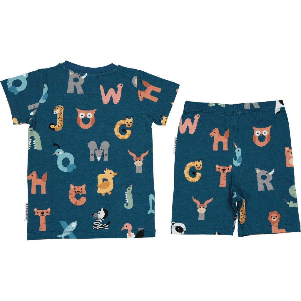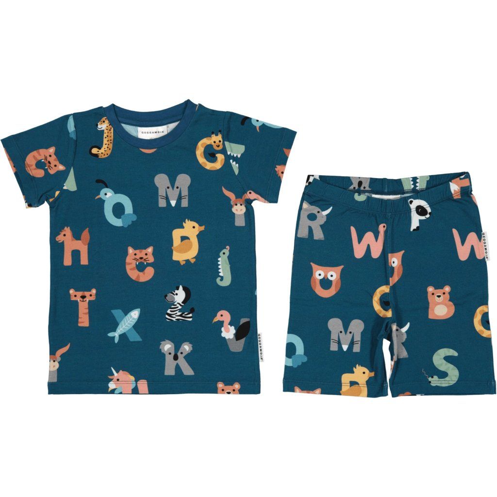 Bambusowy letni komplet dwuczęściowy koszulka i spodenki Geggamoja - niebieski Animal letters