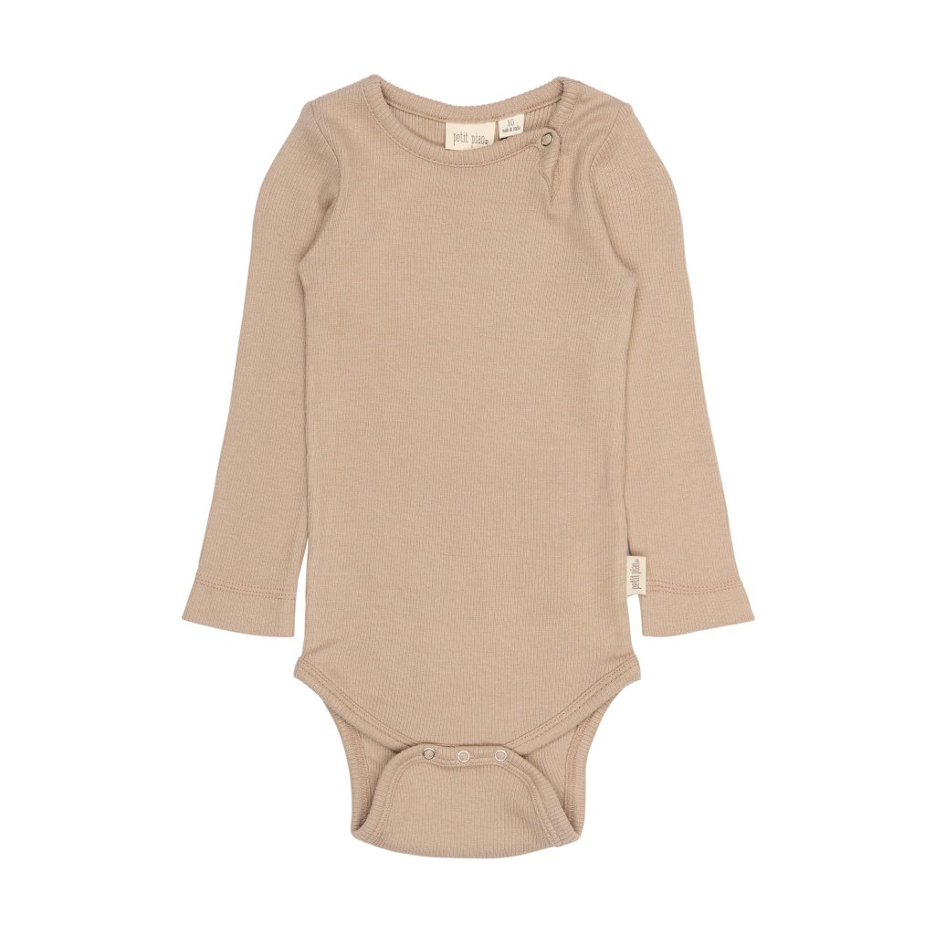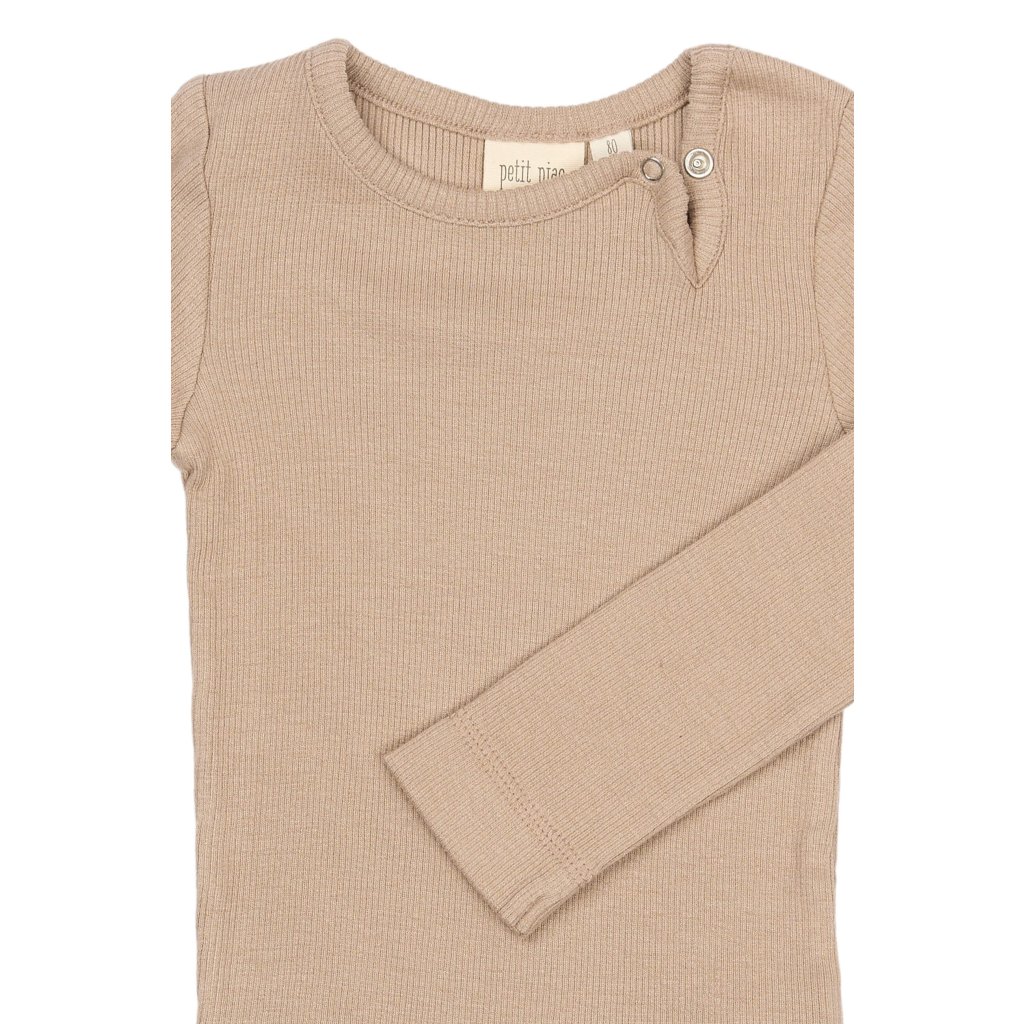 Body dziecięce z długim rękawem z bawełny organicznej i modalu PETIT PIAO - beżowe Ginger snap