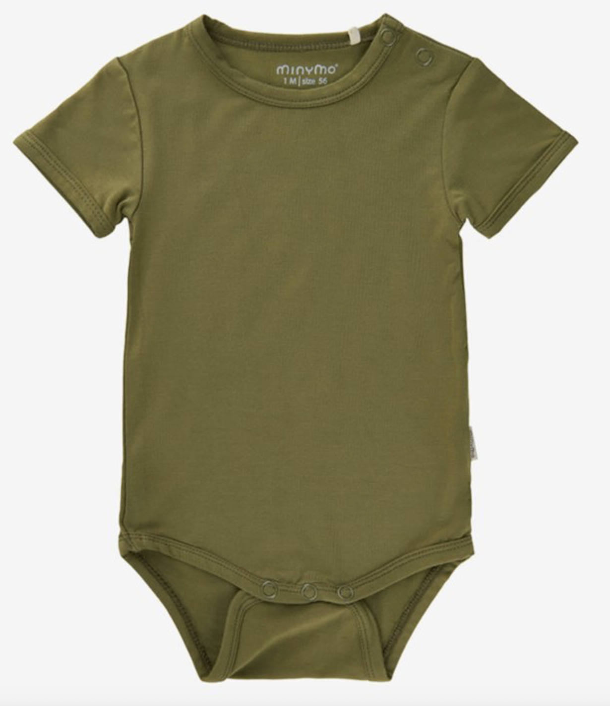 Body dziecięce z krótkim rękawem z bambusa Khaki Dried Herbs MINYMO