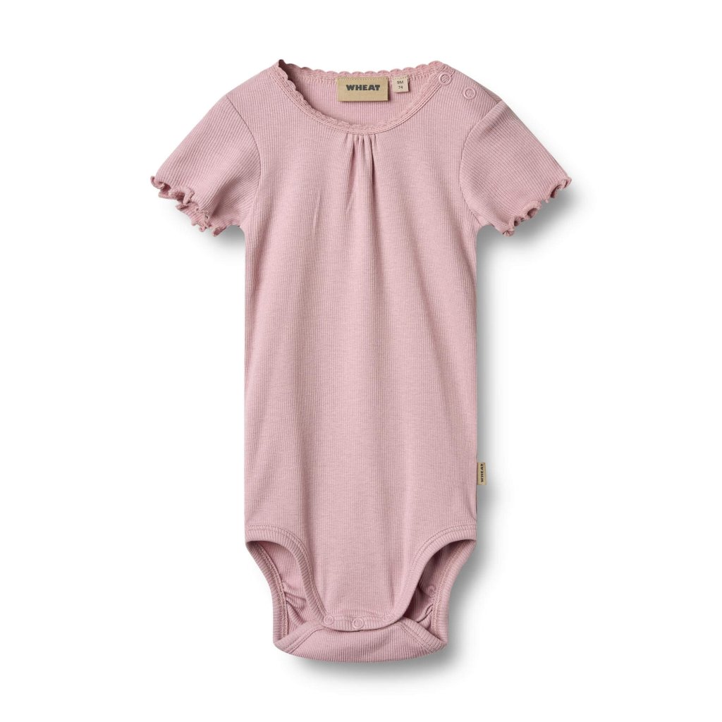 Body dziecięce z krótkim rękawem z bawełny organicznej i modalu Edna Lavender mist Wheat