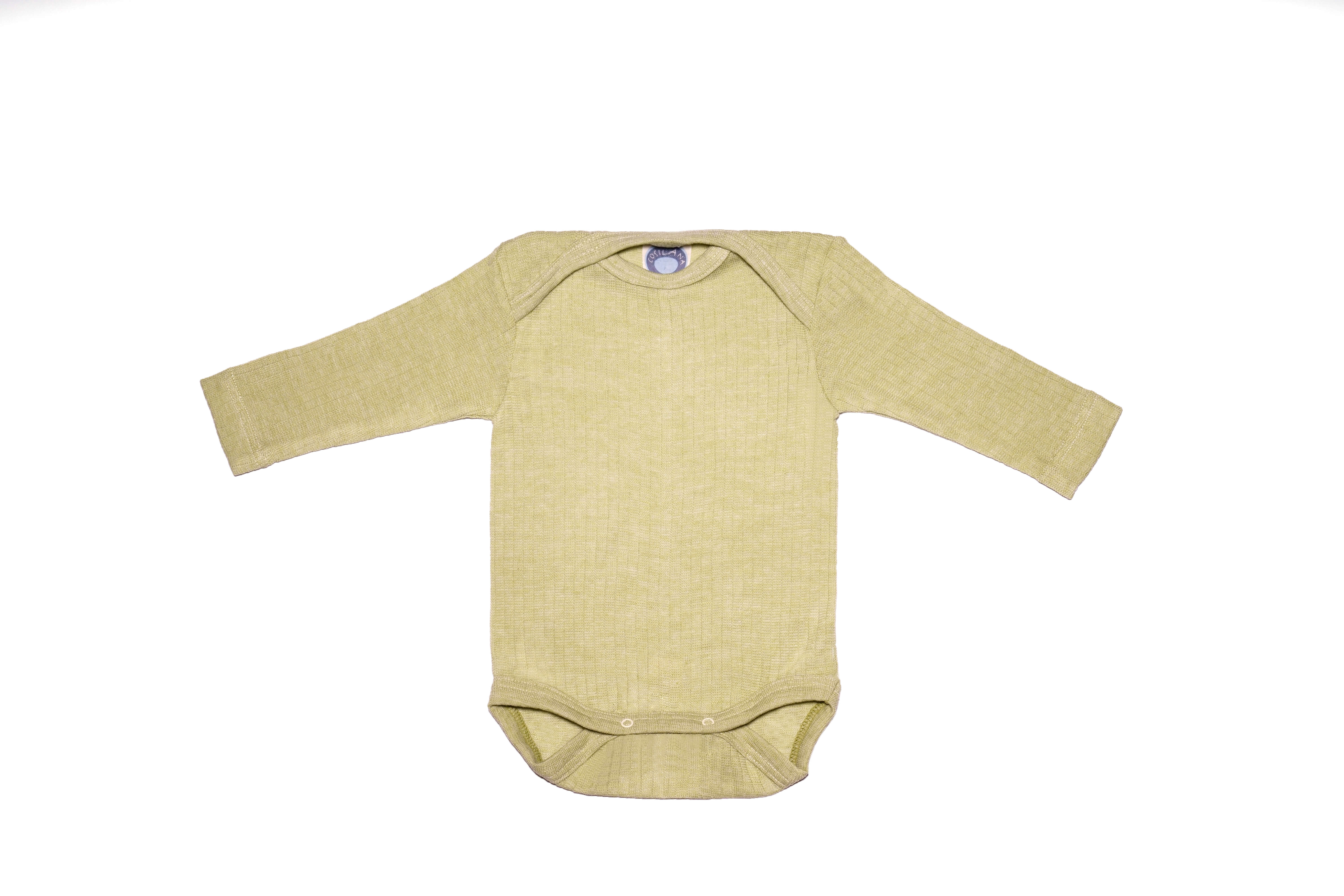 Body dziecięce z wełny merino, bawełny i jedwabiu Cosilana z długim rękawem zielone