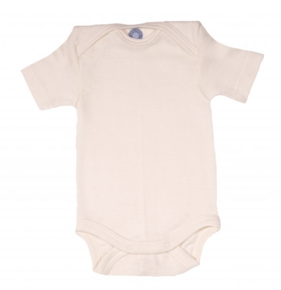 Body dziecięce z wełny merino i jedwabiu Cosilana z krótkim rękawem naturalny kremowy kolor