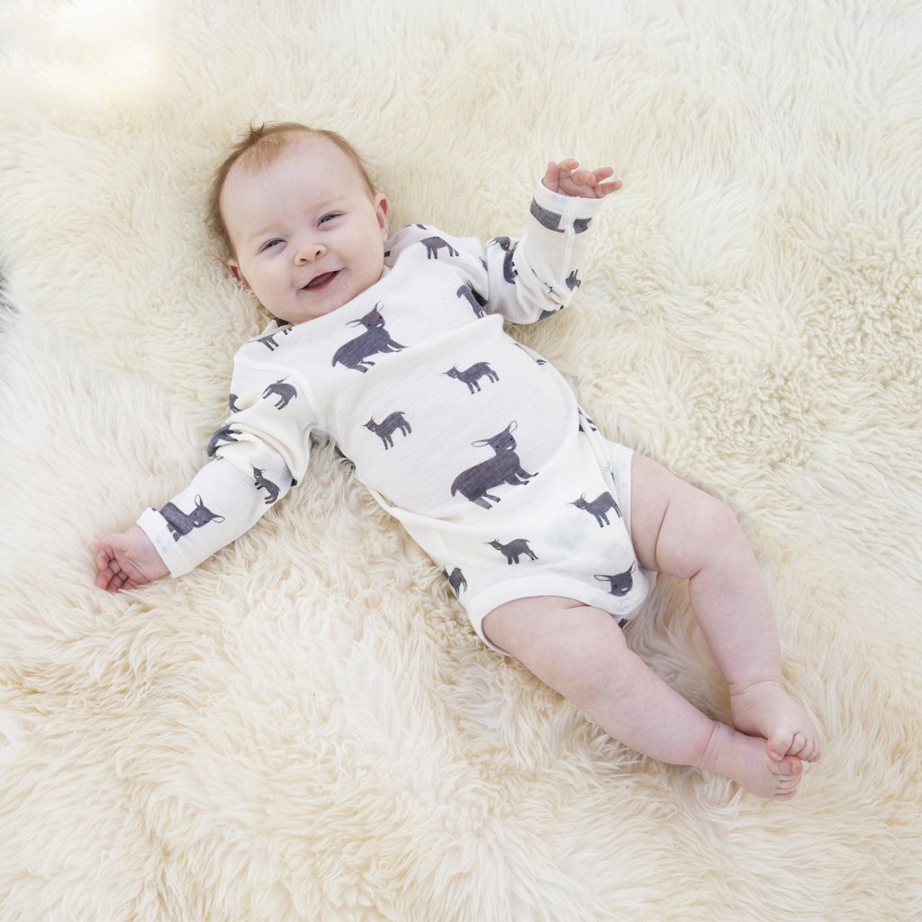 Wyjątkowość tej odzieży polega również na dopracowanym kroju, który zapewnia, że body nie będzie ciągnąć dziecka za szyję. Delikatny golfik utrzyma szyję Twojego dziecka w cieple, a praktyczne zatrzaski w kroku zapobiegają ciągnięciu pleców dziecka. Body z wełny merino z długim rękawem norweskiej marki SAFA jest dodatkowo bardzo elastyczne, dzięki czemu można je łatwo ubrać nawet dzieciom z większą główką.