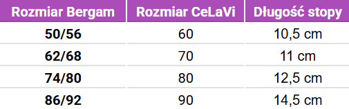 Rozmiary producenta CeLaVi są nieco większe, dlatego prosimy o zwrócenie uwagi na wybór.