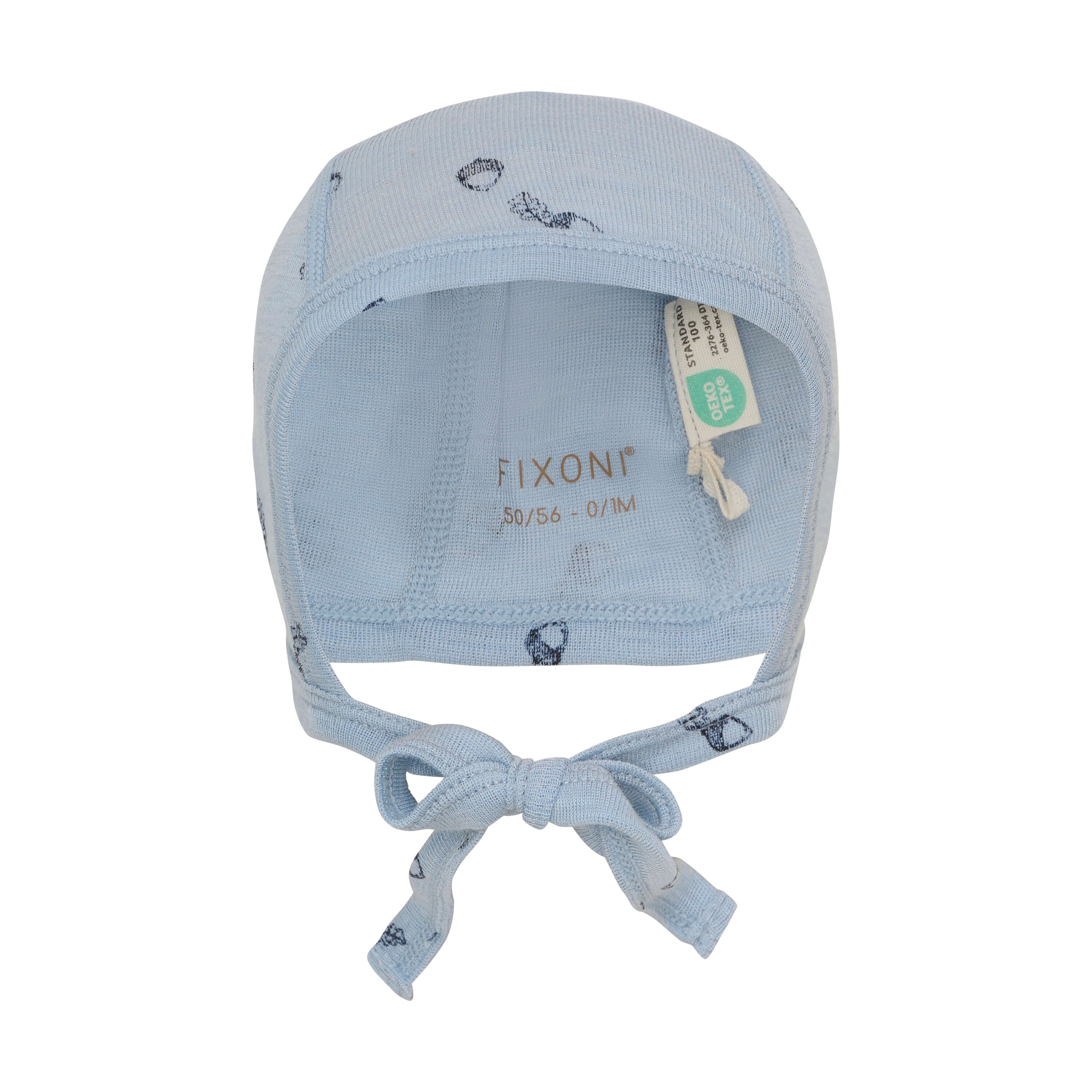 Czapeczka wiązana z wełny merino i jedwabiu dla dzieci Blue Fog niebieska Fixoni