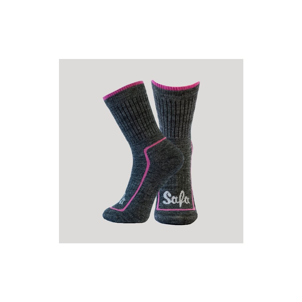 Dwie pary skarpetek merino Arizona z wełnianą frotką szaro/różowe SAFA