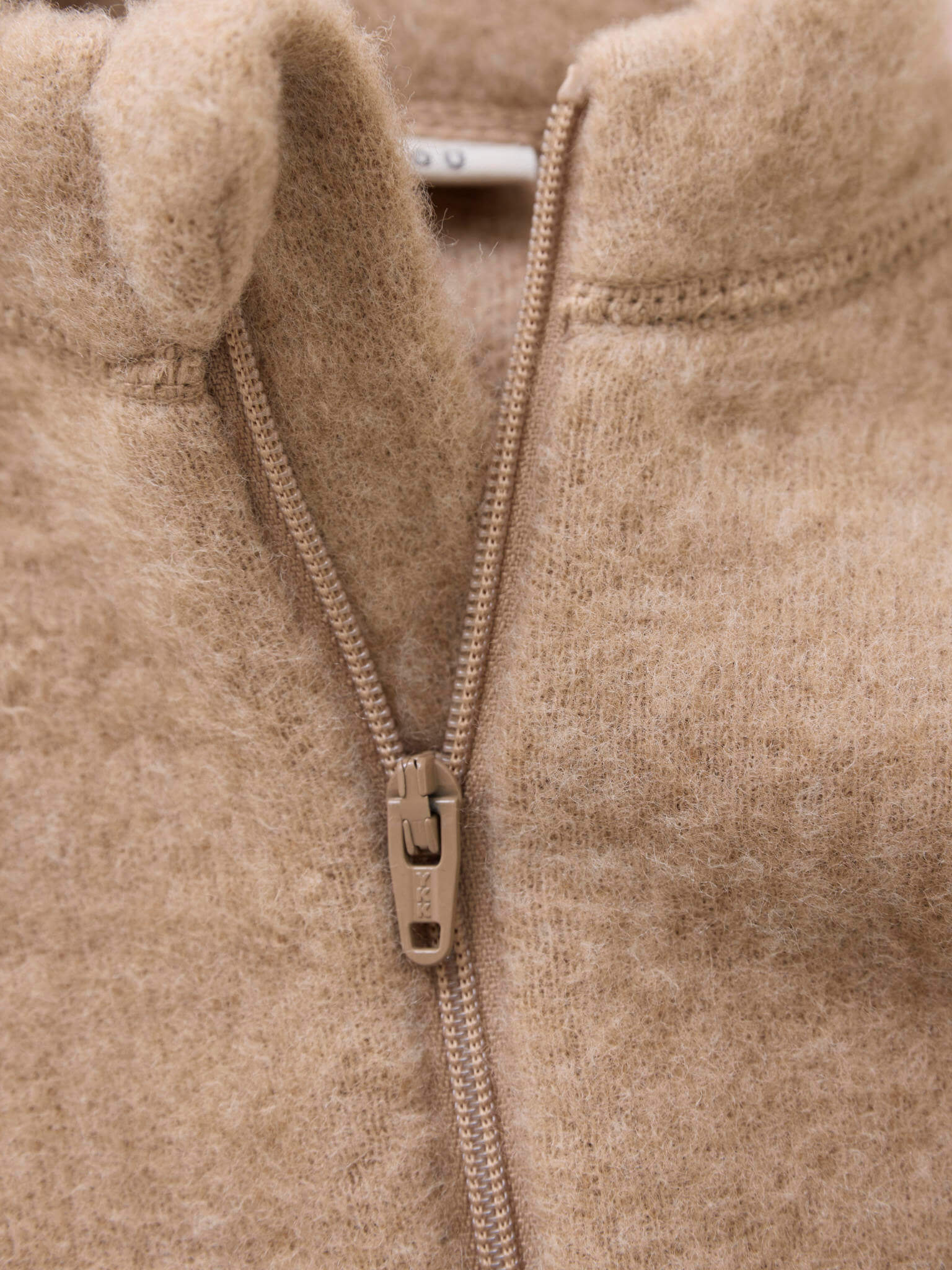 Bluza została zaprojektowana z naciskiem na praktyczność – zamek błyskawiczny z przodu ułatwia zakładanie, a dzięki ochronie podbródka zamek nie podrażnia wrażliwej skóry. Miękka wełna jest bardzo przyjemna w dotyku i stanowi doskonały wybór również dla wrażliwej skóry dziecka.