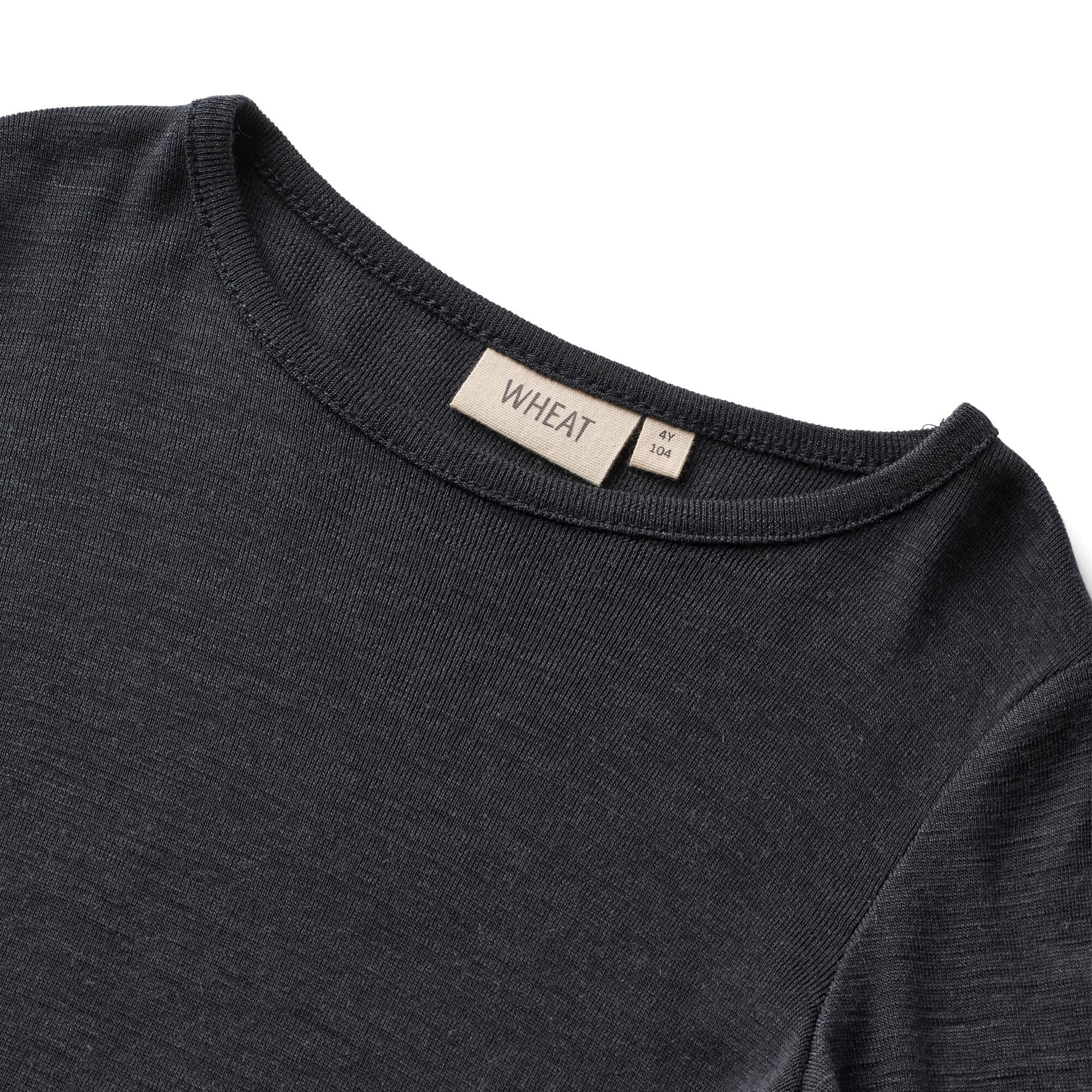 Dziecięca koszulka z długim rękawem z wełny merino, granatowa Wheat