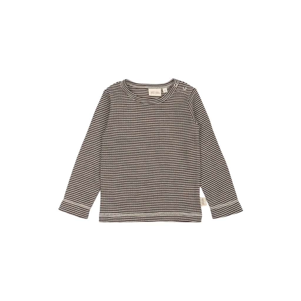 Dziecięca koszulka z długim rękawem z wełny merino PETIT PIAO - brązowa Coffee Bean/Dark Off White