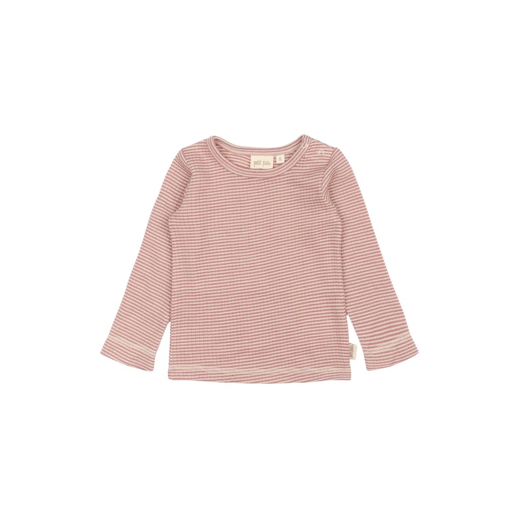 Dziecięca koszulka z długim rękawem z wełny merino PETIT PIAO - różowa Nostalgic Rose/Dark Off White
