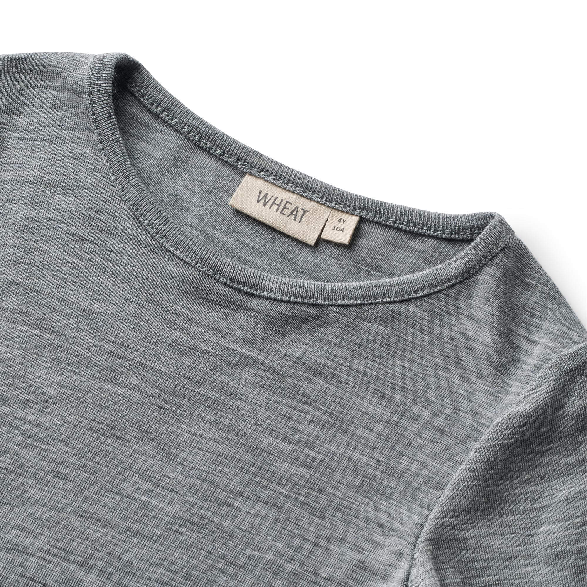 Dziecięca koszulka z długim rękawem z wełny merino szara melanżowa grey Wheat