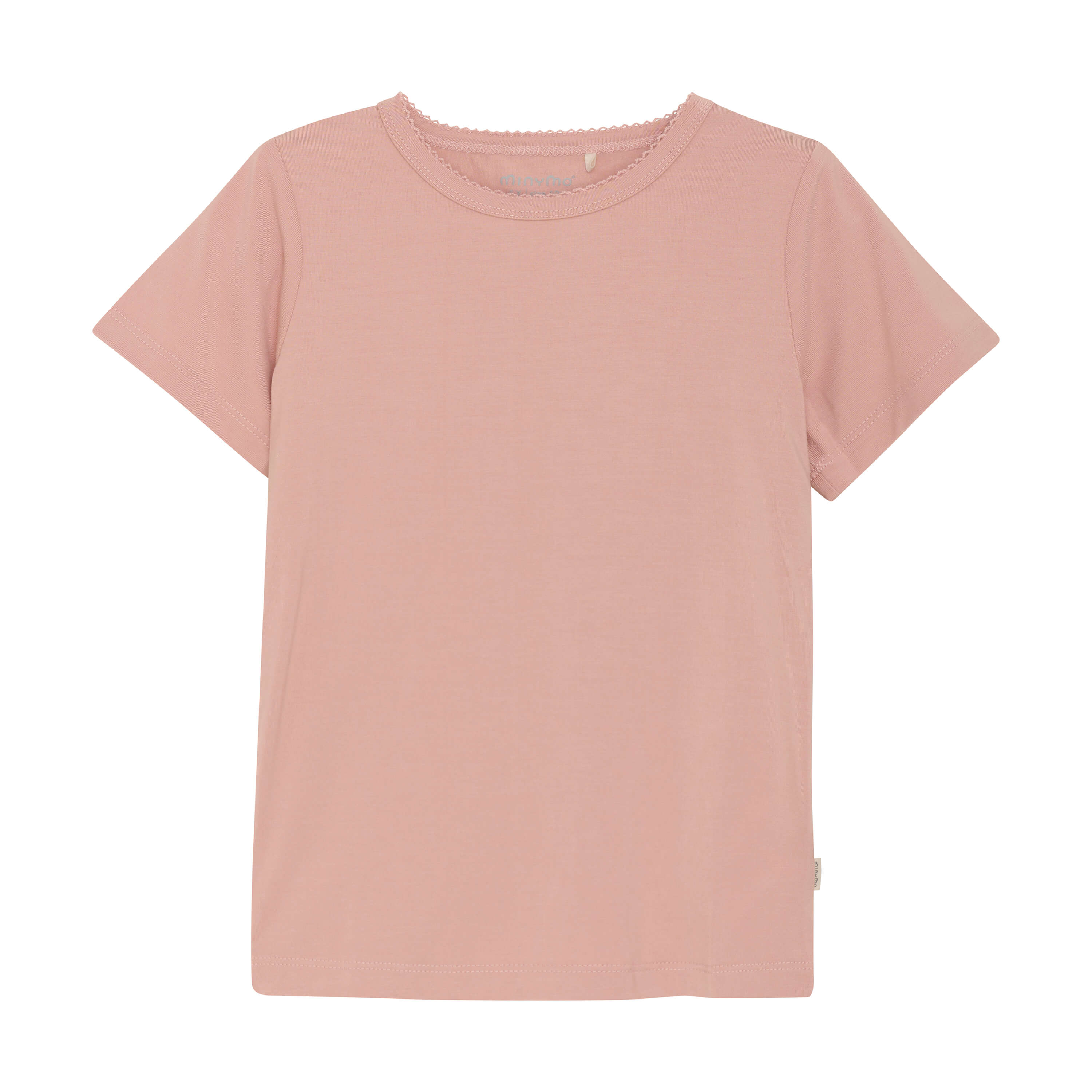 Dziecięca koszulka z krótkim rękawem z bambusa, różowa, kolor Misty Rose MINYMO