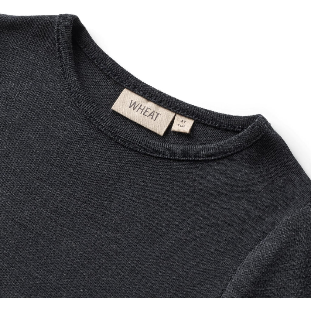 Ten T-shirt marki Wheat jest wykonany z miękkiej 100% wełny merino. Ten materiał oferuje doskonałe połączenie komfortu, funkcjonalności i stylu. Wełna merino jest naturalnie termoregulacyjna, co oznacza, że utrzymuje temperaturę ciała na optymalnym poziomie – ogrzewa, gdy jest zimno, a jednocześnie odprowadza nadmiar ciepła, zapobiegając przegrzaniu. To jest szczególnie ważne dla aktywnych dzieci, które potrzebują pozostać w cieple, nie narażając się na przegrzanie lub pocenie.