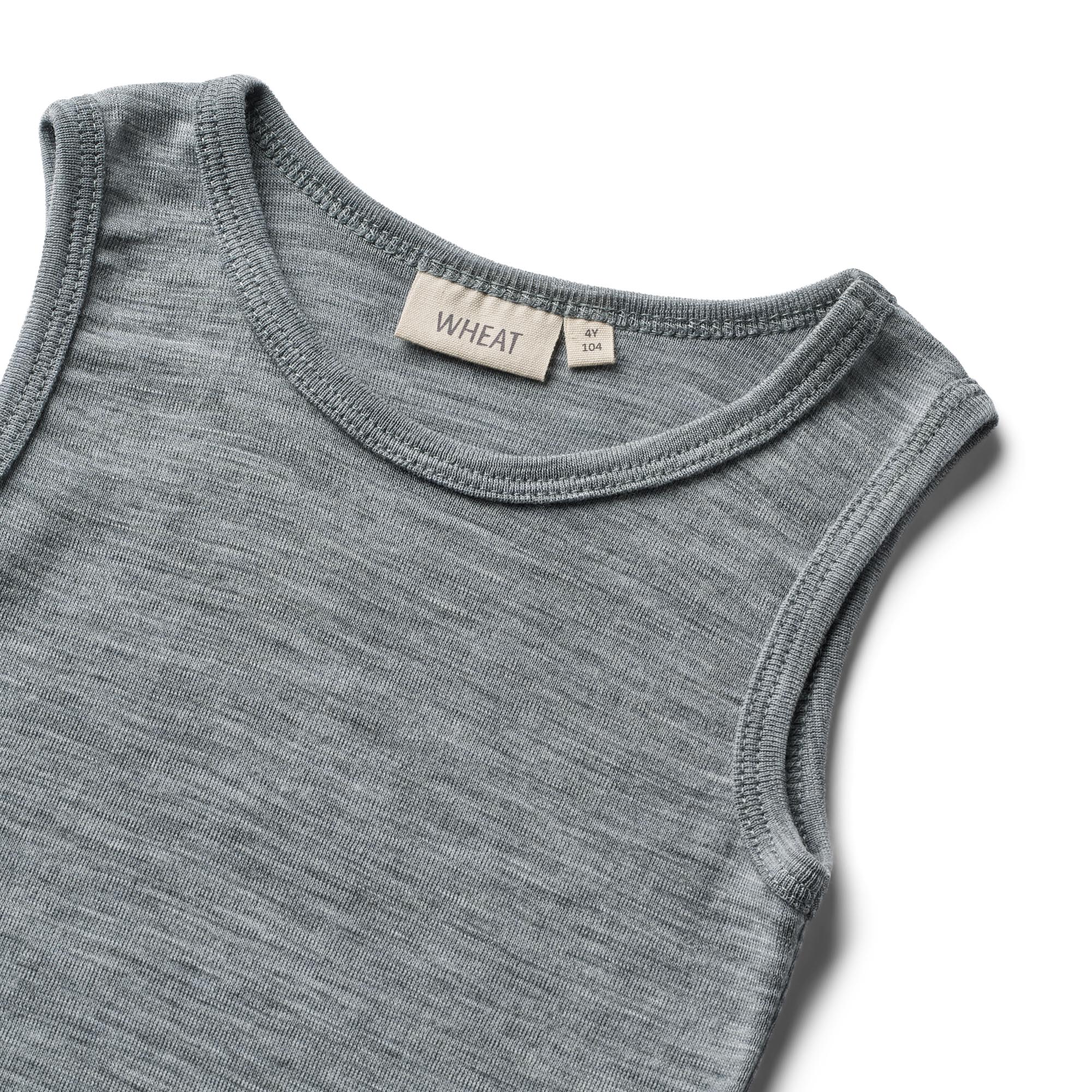 Ta koszulka na ramiączkach marki Wheat wykonana jest z miękkiej wełny merino. Ten materiał oferuje doskonałe połączenie komfortu, funkcjonalności i stylu. Wełna merino jest naturalnie termoregulacyjna, co oznacza, że utrzymuje temperaturę ciała na optymalnym poziomie – ogrzewa, gdy jest zimno, a jednocześnie odprowadza nadmiar ciepła, zapobiegając przegrzaniu. To jest szczególnie ważne dla aktywnych dzieci, które potrzebują pozostać w cieple, nie narażając się na przegrzanie lub pocenie.
