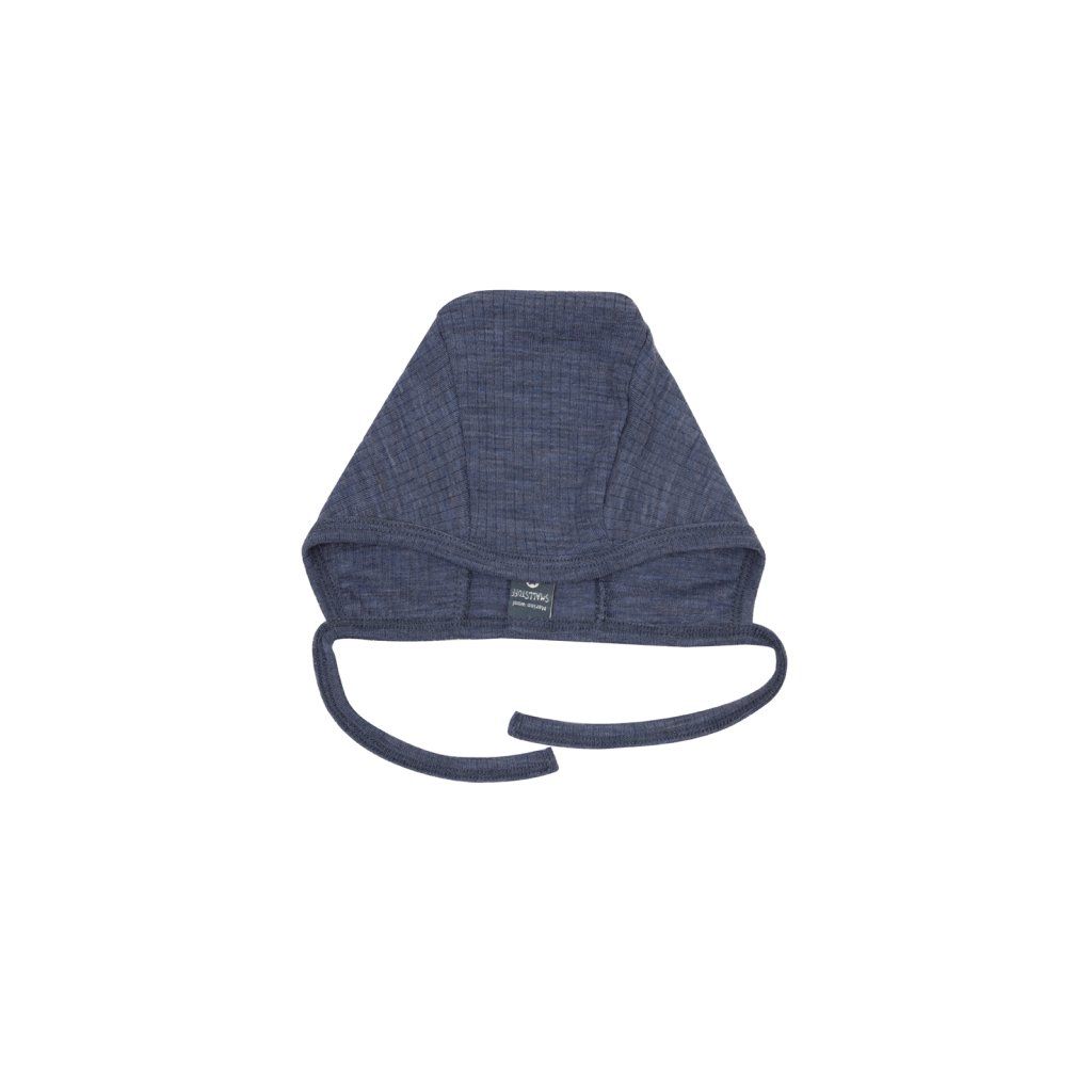Dziecięca wiązana czapka merino ze sznurkiem dla niemowlęcia Smallstuff - kolor niebieski denim