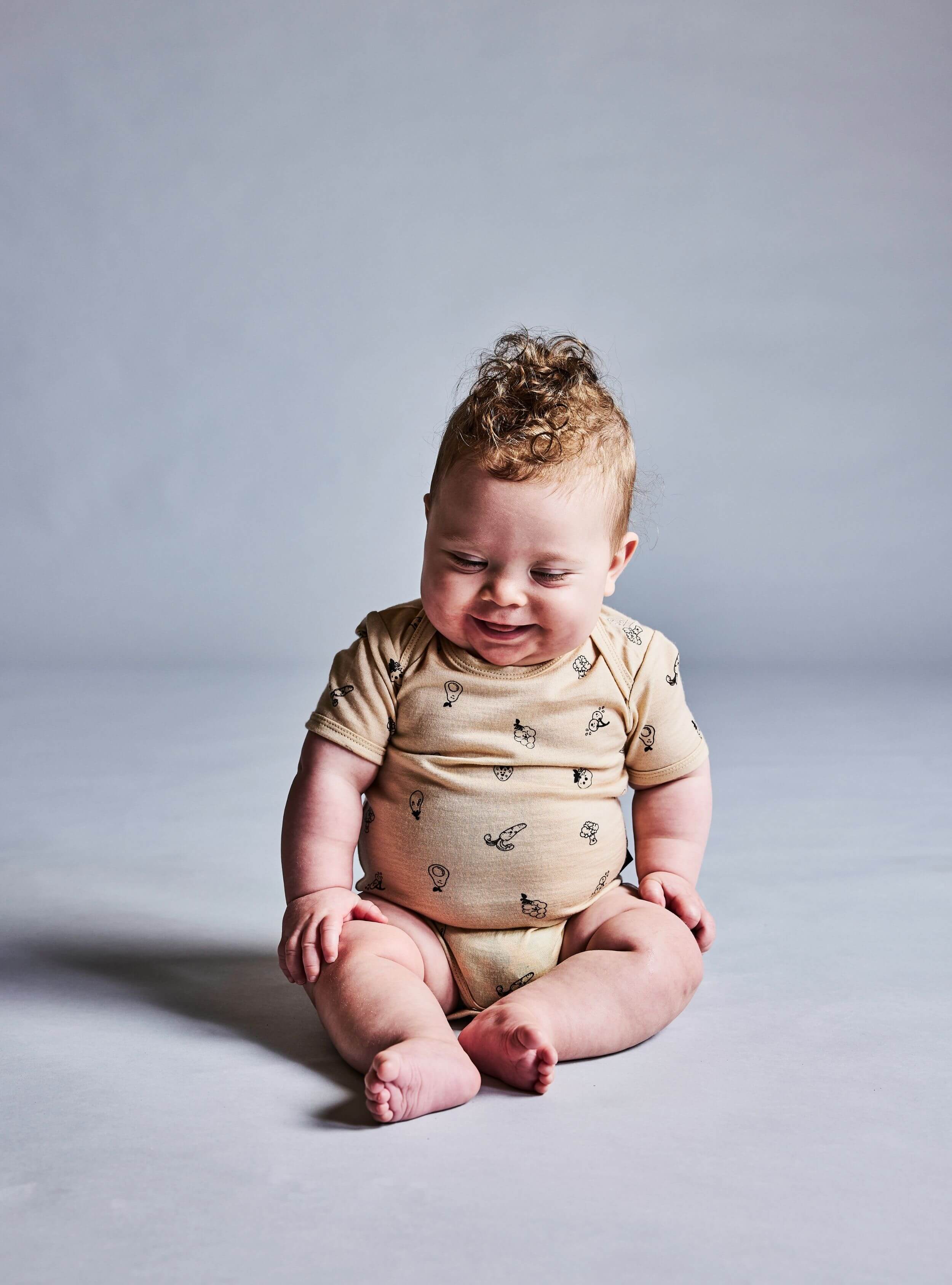 Dziecięce body z wełny merino, wykonane w 100% z wełny merino, z krótkim rękawem Wheat Marle Fruit'n'Veg LFOH