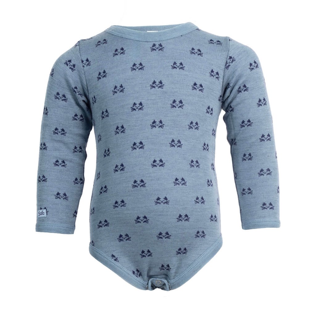Dziecięce body z wełny merino ze 100% wełny merino z długim rękawem Jaquard SAFA - niebieskie