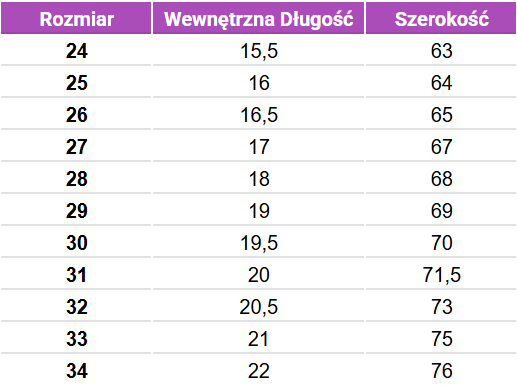 Aby dokładnie określić rozmiar, skorzystaj z poniższej tabeli: