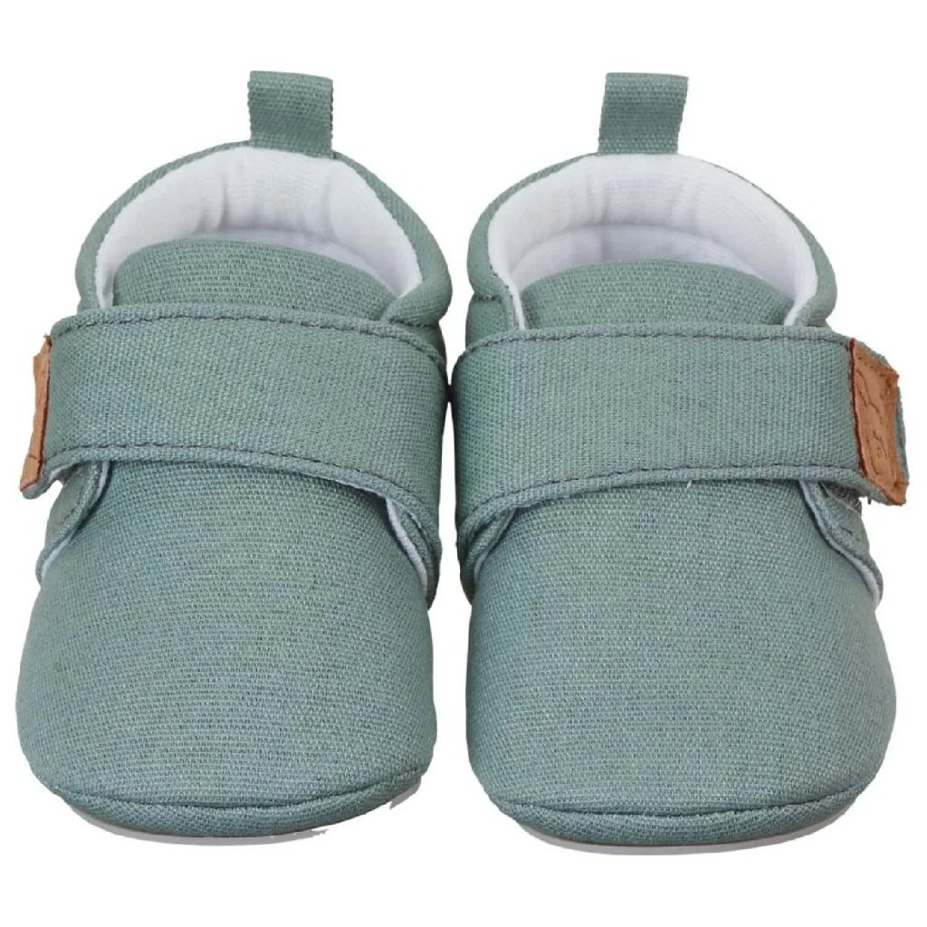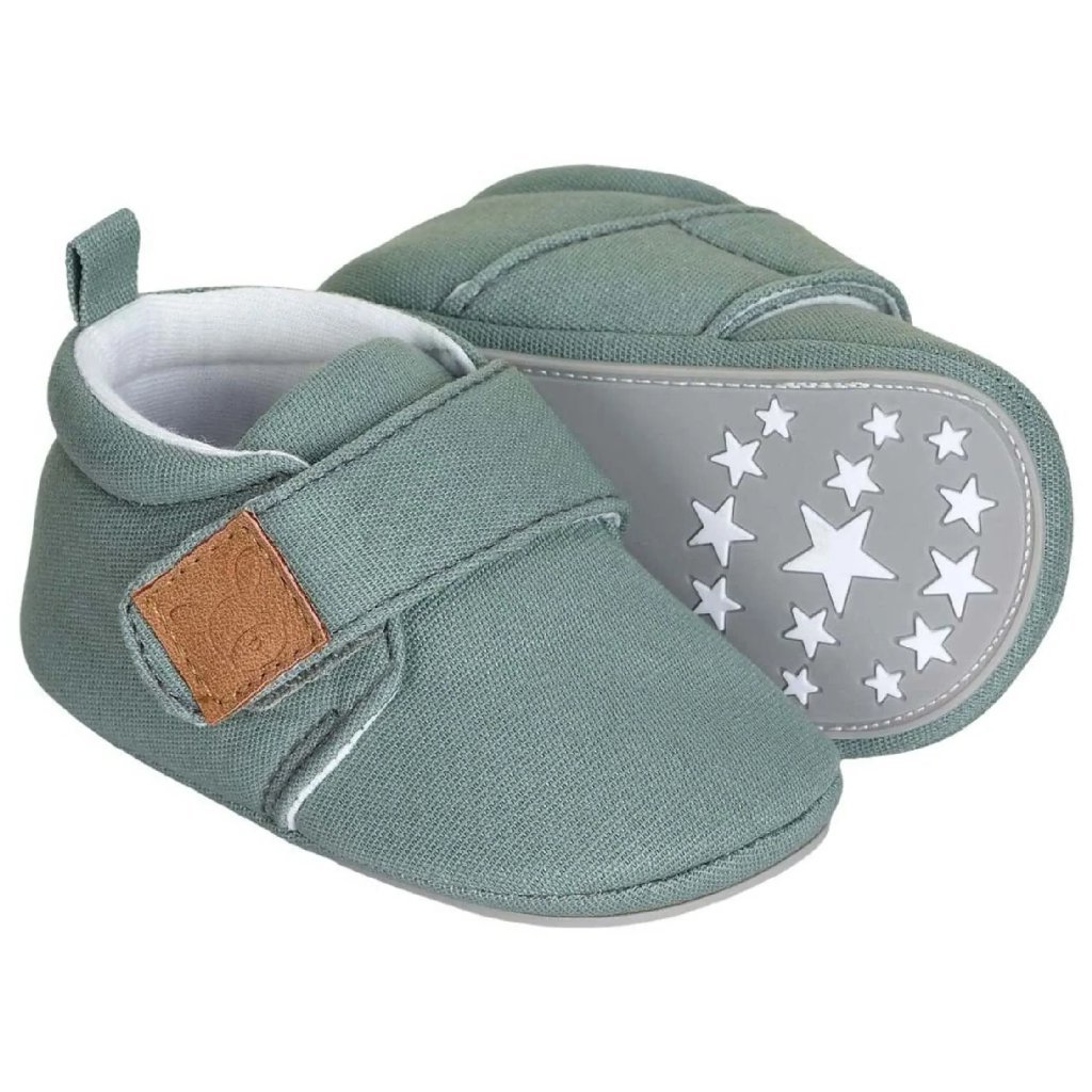 Dziecięce buciki (paputki) z płótna zielone Sterntaler