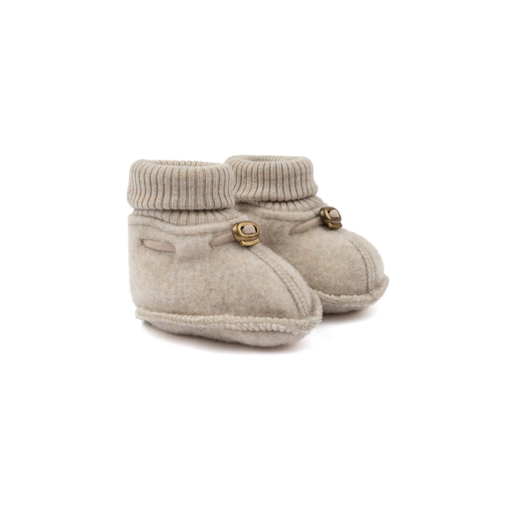 Buciki mają prosty, uniseksowy design w jednolitym kolorze z elastycznym ściągaczem, który zapewnia, że buciki pozostaną na stopach i nie będą się zsuwać. Dzięki doskonałym właściwościom termoregulacyjnym wełny merino, buciki idealnie nadają się na chłodne zimowe dni, ale także na wiosnę i jesień.