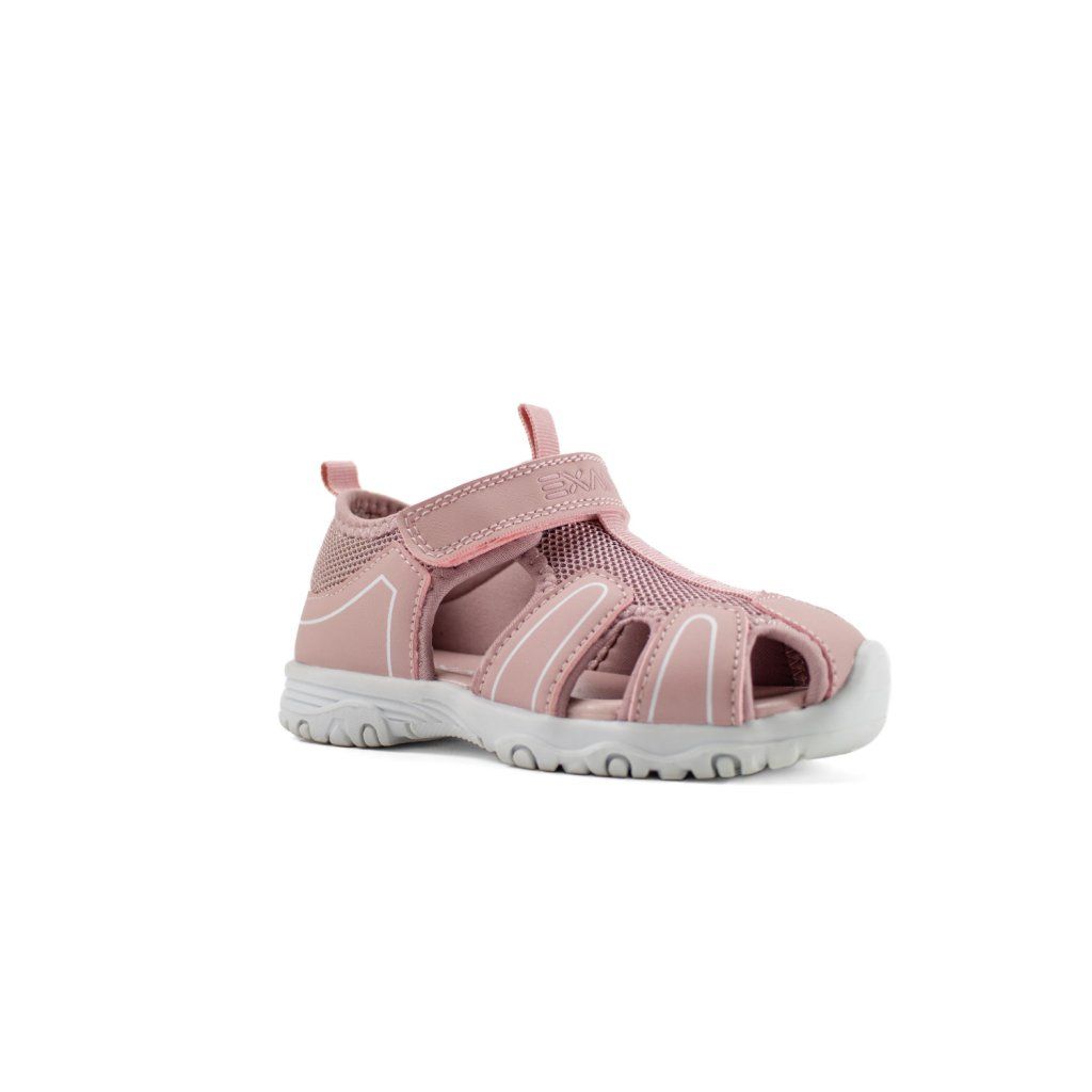 Dziecięce, letnie sandały sportowe wykonane są z przewiewnej siateczki w połączeniu z materiałem syntetycznym. Sandały mają przestronny, zamknięty nosek, w którym zmieszczą się wszystkie palce, które mogą pracować podczas chodzenia, a jednocześnie są chronione przed uderzeniami.