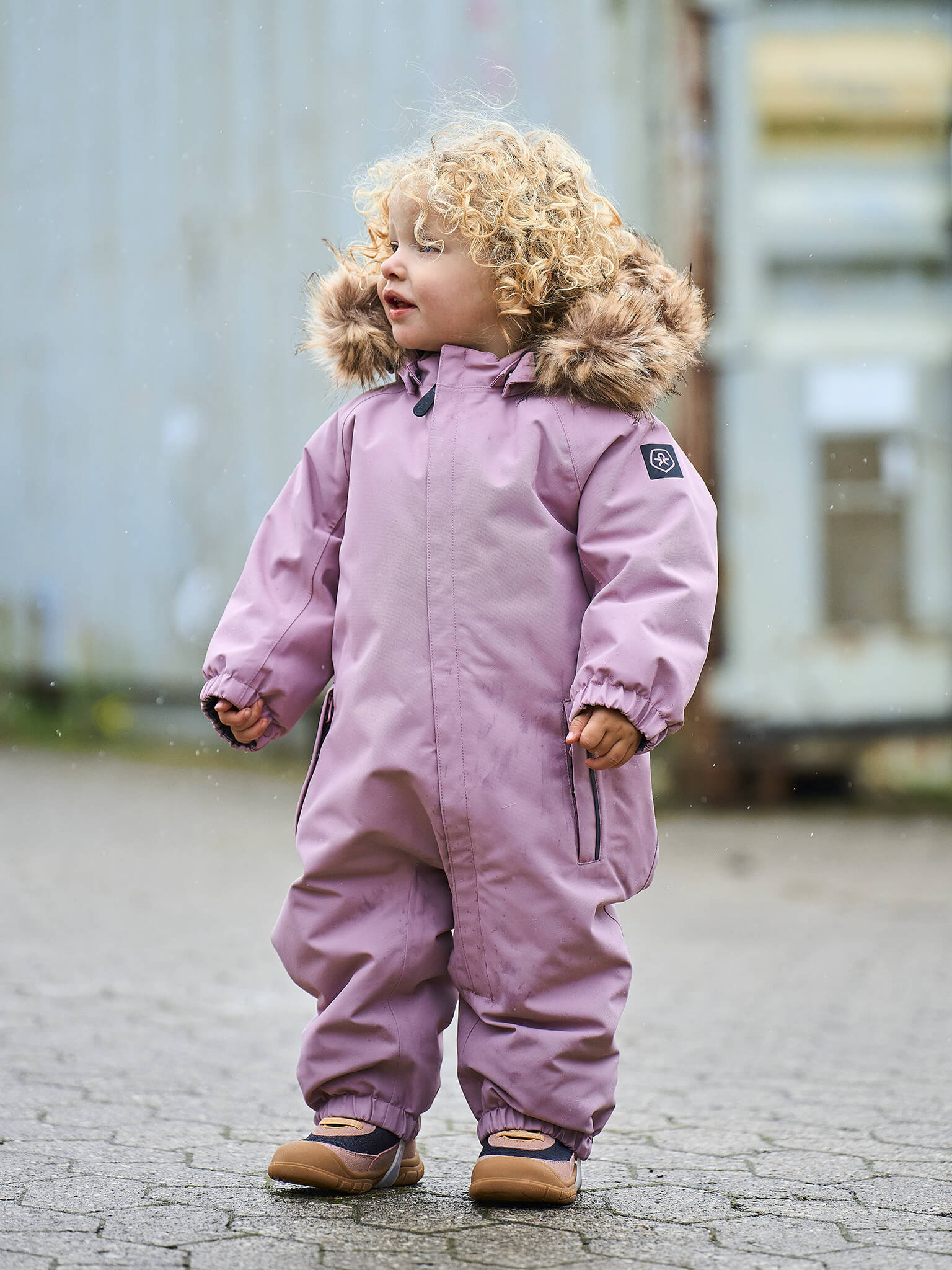 Dziecięcy ciepły kombinezon zimowy ze sztucznym futerkiem Color Kids - różowy Woodrose