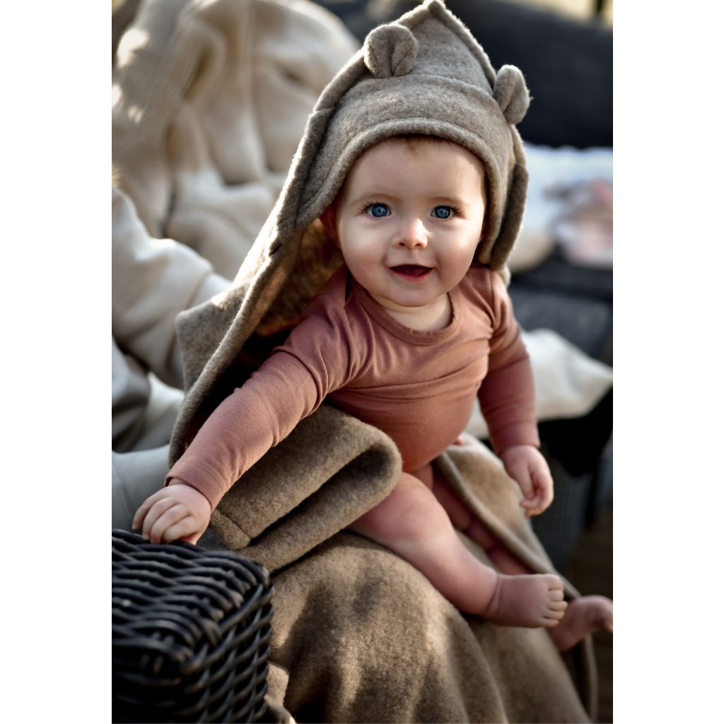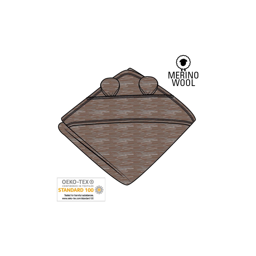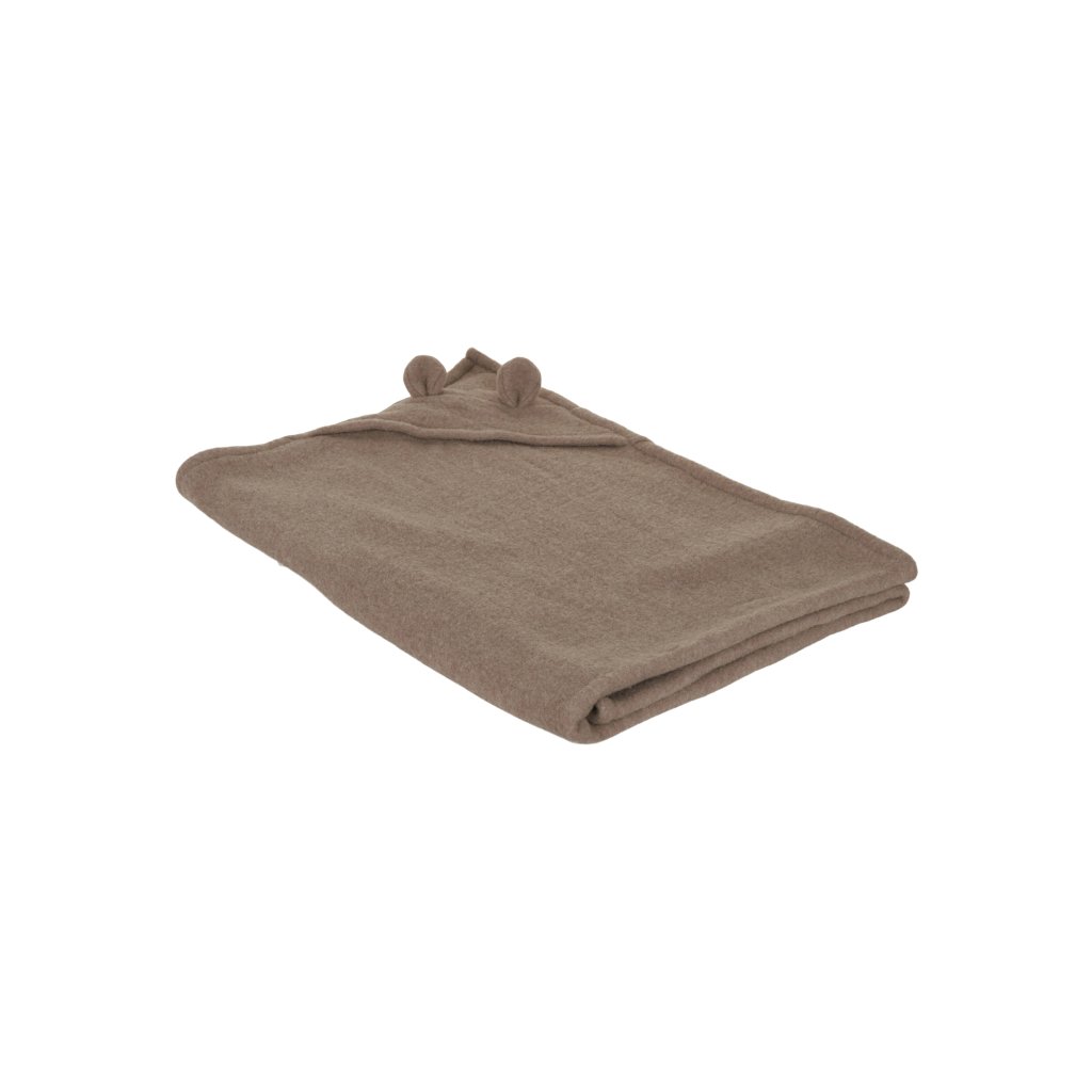 Dziecięcy kocyk z wełny merino z uszkami Mikk-line - brązowy