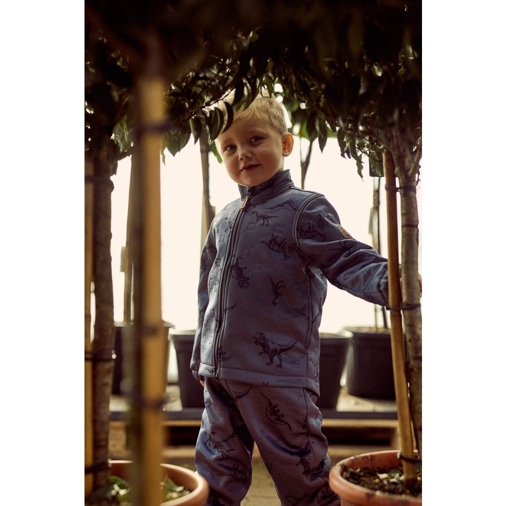 Dziecięcy zestaw termiczny kurtka i spodnie Mikk-Line - Warm kolor niebieski Dino