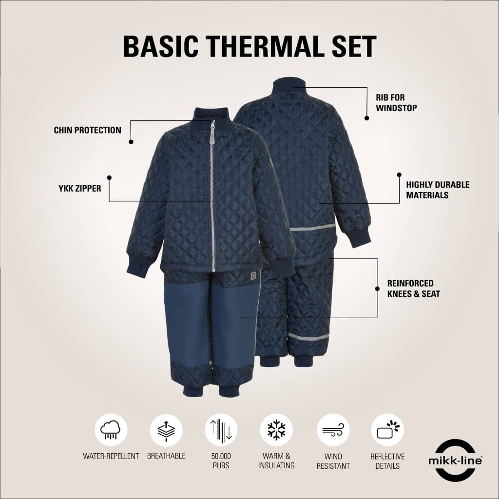 Zestaw termoaktywny od Mikk-line składa się z kurtki i spodni wykonanych z praktycznego materiału z wodoodporną powłoką bez fluoru (BIONIC-FINISH® ECO). To prosta, miękka i funkcjonalna odzież wierzchnia dla dzieci, która ogrzeje i pozwoli im cieszyć się przygodami na świeżym powietrzu w okresie przejściowym z chłodną i zmienną pogodą.