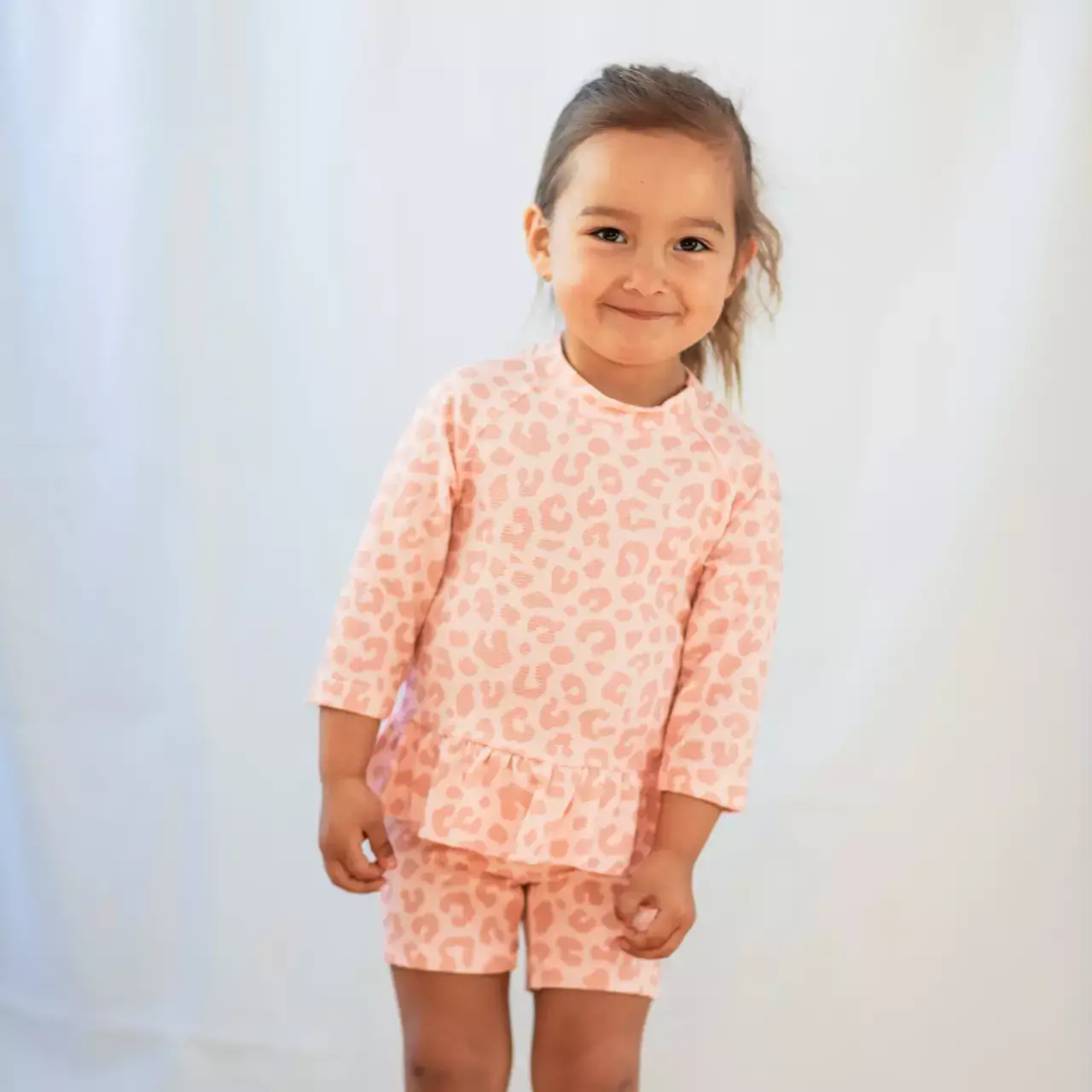 Dziecięcy zestaw UV koszulka z długim rękawem i szorty Pink Leo Geggamoja