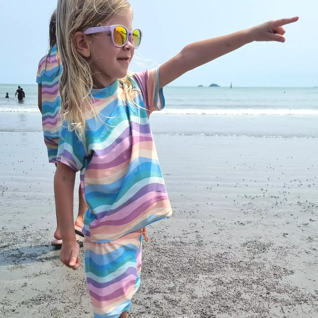 Dziecięcy zestaw UV koszulka z krótkim rękawem i szorty Rainbow Geggamoja