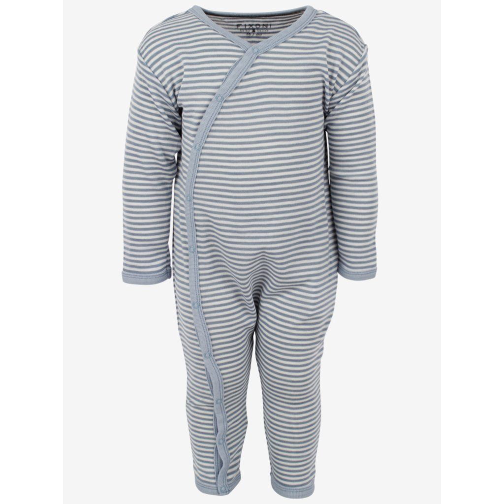 Kombinezon dziecięcy z wełny merino i jedwabiu Fixoni, niebieskie paski