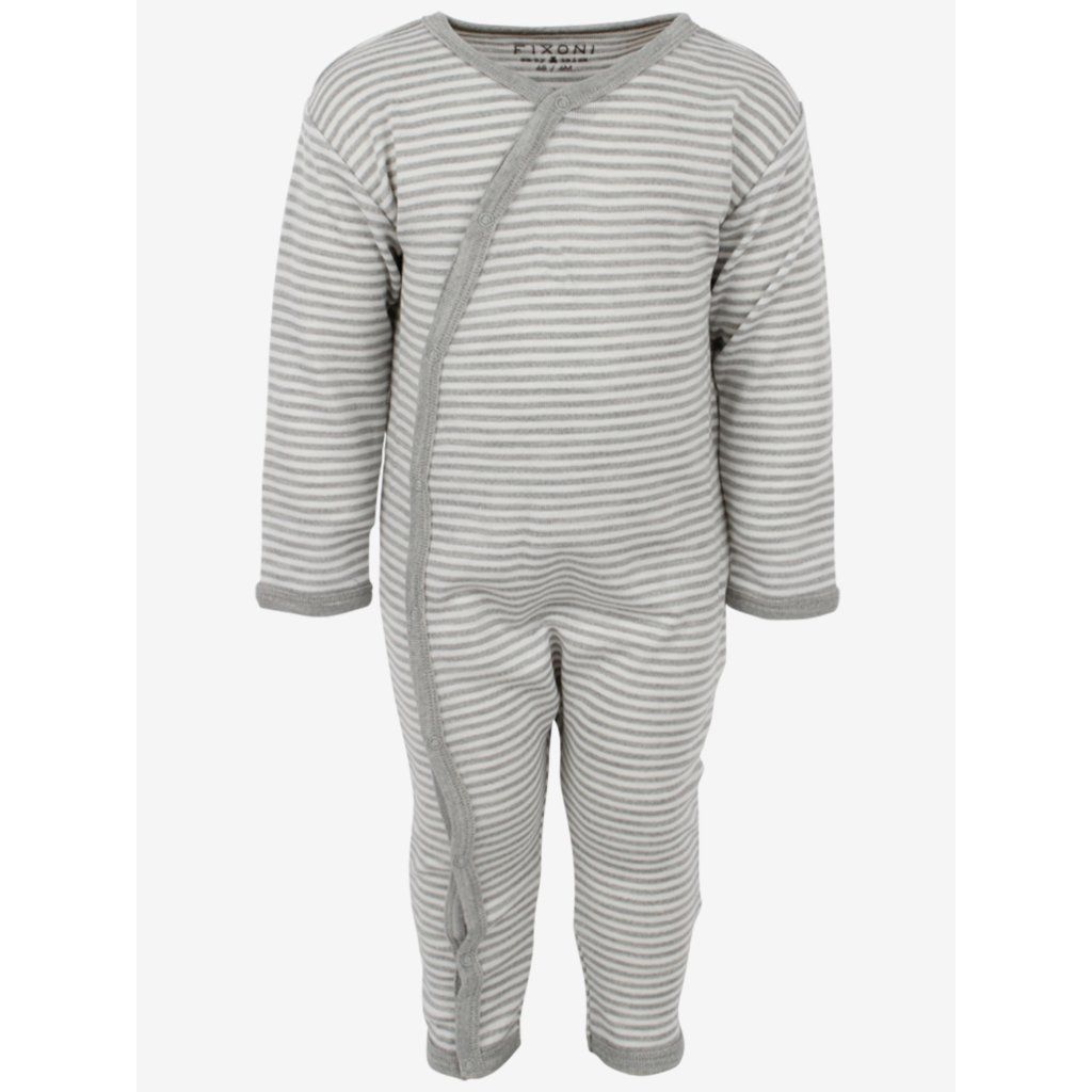 Kombinezon Merino dla dzieci z wełny merino i jedwabiu Fixoni szary pasek