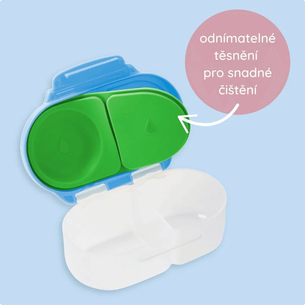 Małe pudełko na przekąski marki b.box to sprytne i praktyczne rozwiązanie do przechowywania przekąsek – idealne do przedszkola, szkoły, na plac zabaw i na wycieczkę.