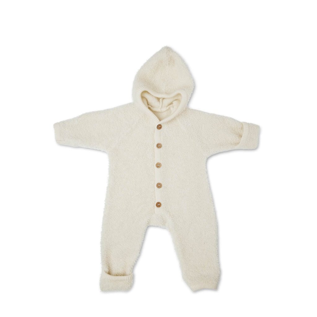 Merino kombinezon bouclé dla dzieci z kapturem i wywijanymi mankietami Smallstuff - off white