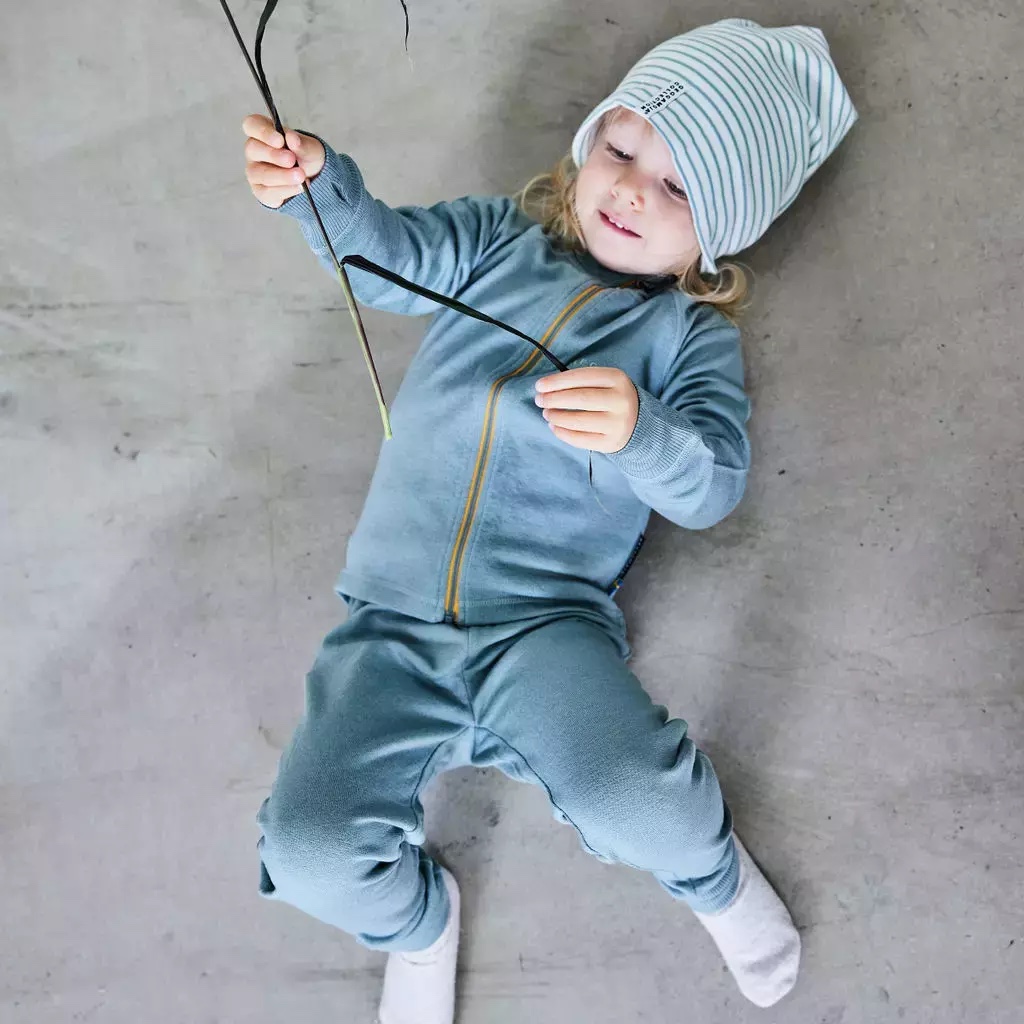Nasze dziecięce spodnie dresowe z wełny merino zostały zaprojektowane tak, aby stały się integralną częścią garderoby Twojego dziecka. W ciepłe miesiące mogą służyć jako lekka warstwa wierzchnia, a w chłodniejsze jako idealna druga warstwa pod zimową odzież. Dzięki mankietom na nogawkach i elastycznym włóknom spodnie dresowe "rosną" razem z dzieckiem, co gwarantuje, że będą długo leżeć jak ulał.