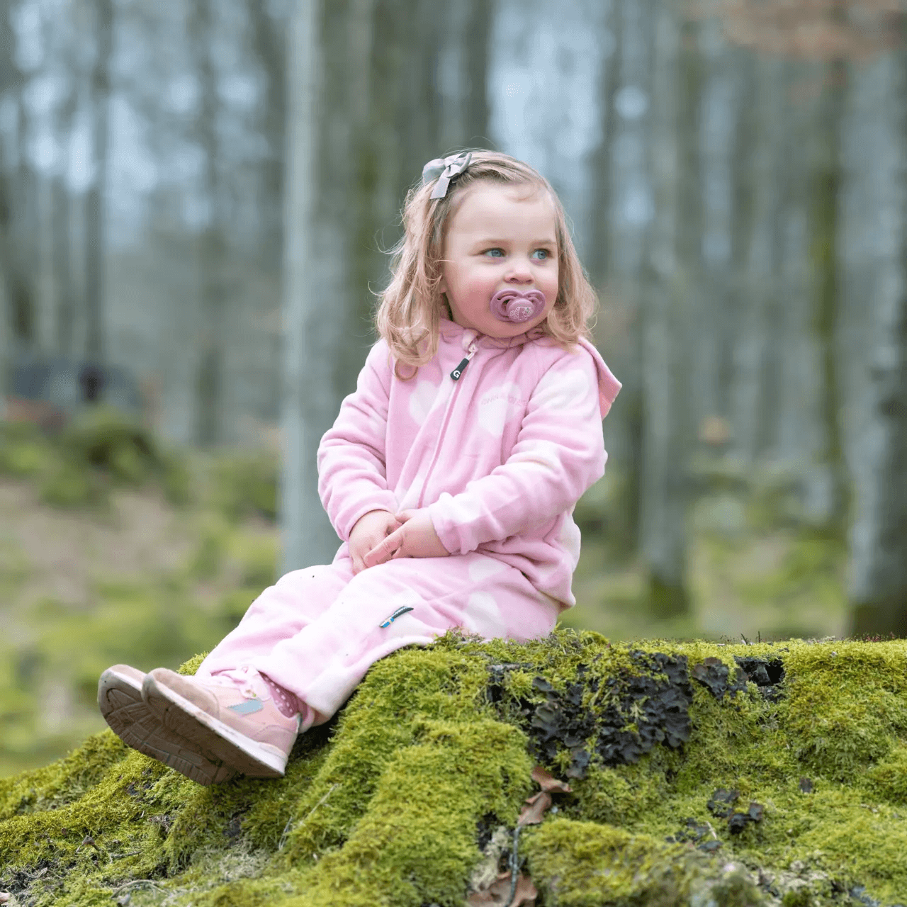 Miękki, polarowy kombinezon dla dzieci różowy z serduszkami Geggamoja