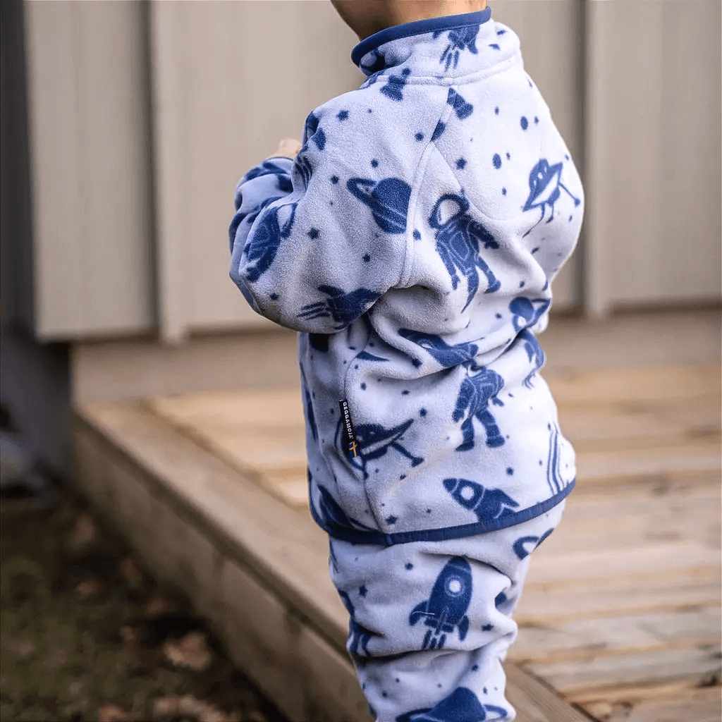 Ten mięciutki polarowy komplet od szwedzkiej marki Geggamoja Twoje dzieci pokochają. To doskonała druga warstwa dla dzieci. Druga warstwa ma za zadanie przede wszystkim ogrzewać (więcej o warstwach dowiesz się z naszego e-booka tutaj). Dziecięcy komplet polarowy wykorzystasz z dziećmi od jesieni do wiosny.