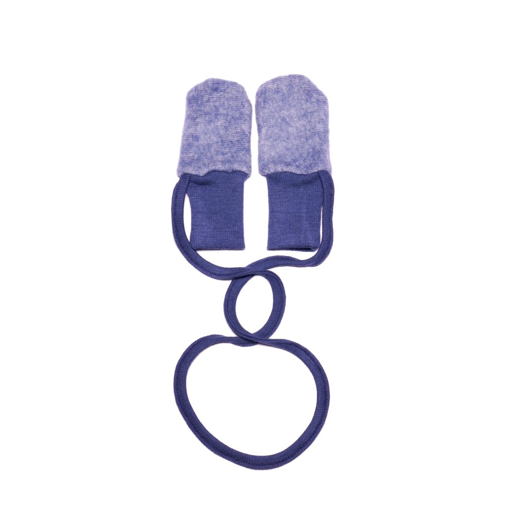 Rękawiczki z wełny merino i bawełny ze sznurkiem dla niemowląt niebieskie Cosilana