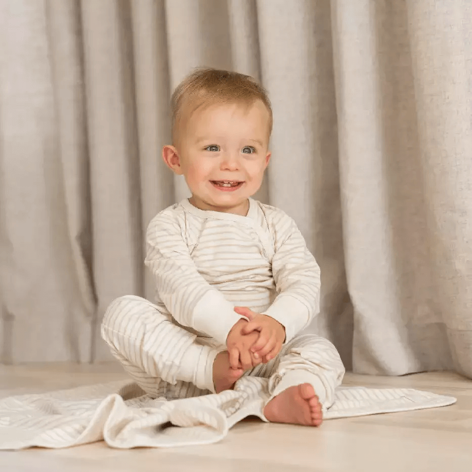 Bambus jest gładki i przyjemny dla skóry oraz pozwala jej oddychać. Jego właściwości termiczne, podobnie jak wełna i jedwab, powodują, że materiał grzeje, gdy jest zimno, i chłodzi, gdy jest ciepło - idealny materiał na odzież dziecięcą. Więcej o włóknie bambusowym dowiesz się z naszego przewodnika.