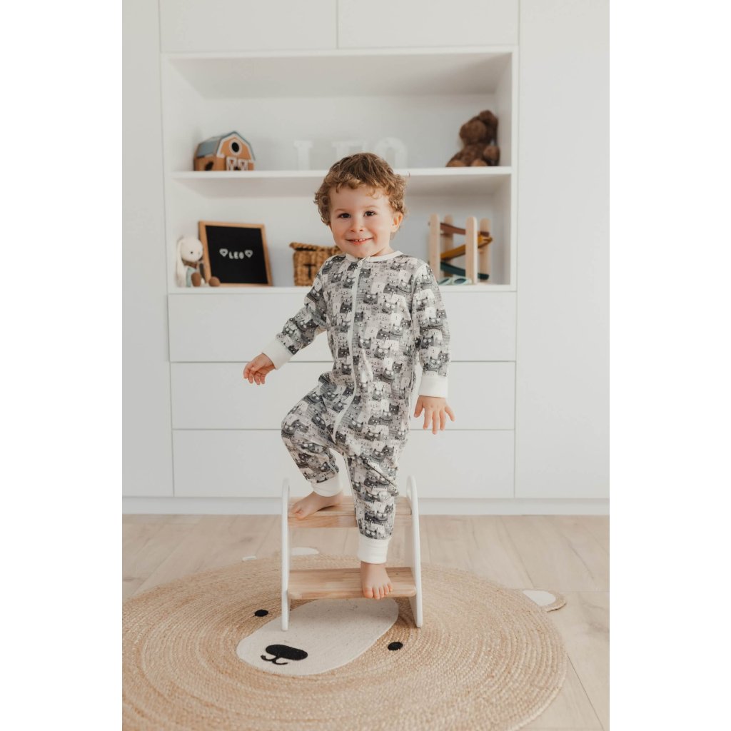 Kombinezon ma praktyczne zapięcie na zamek błyskawiczny na całej długości, co ułatwia zakładanie i zdejmowanie. Wysoka jakość wykonania zapewnia długą żywotność nawet przy częstym praniu. Dodatkowo jest to produkt wykonany z materiałów zrównoważonych i odnawialnych, które są przyjazne dla środowiska i skóry dziecka.