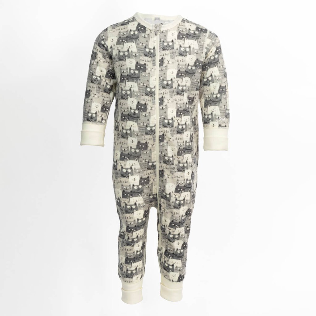 Rosnący dwuwarstwowy dziecięcy kombinezon z merynosa z bambusem SAFA - szary kot