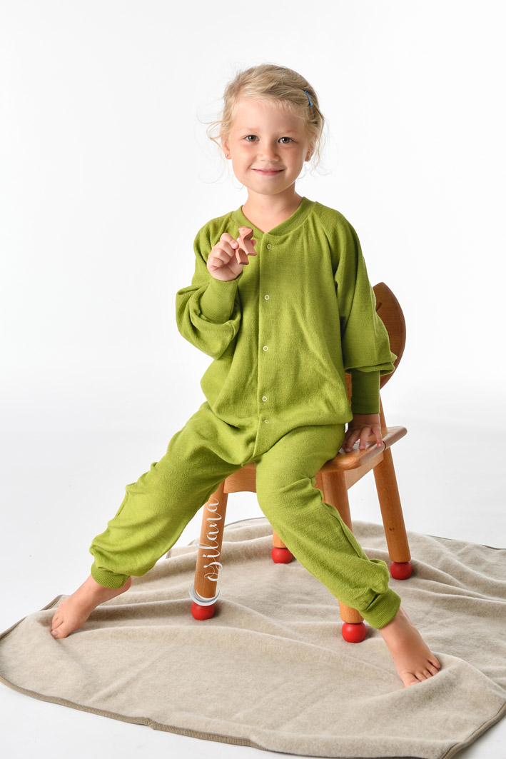 Wełna potrafi wchłonąć wilgoć do jednej trzeciej swojej wagi, nie powodując uczucia wilgoci na skórze. Overal z wełny merino ma wysoką naturalną zawartość lanoliny, która działa antybakteryjnie. Zwykle wystarczy regularnie wietrzyć wełniany overal i tylko od czasu do czasu go wyprać. Aby uniknąć moli, użyj lawendy lub kawałków drewna cedrowego do swojej szafy.