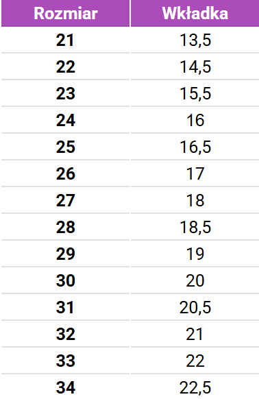 Tabela rozmiarów CeLaVi Kalosze