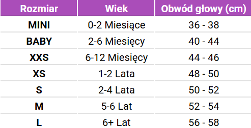 Tabela rozmiarów Geggamoja Czapka bambusowa