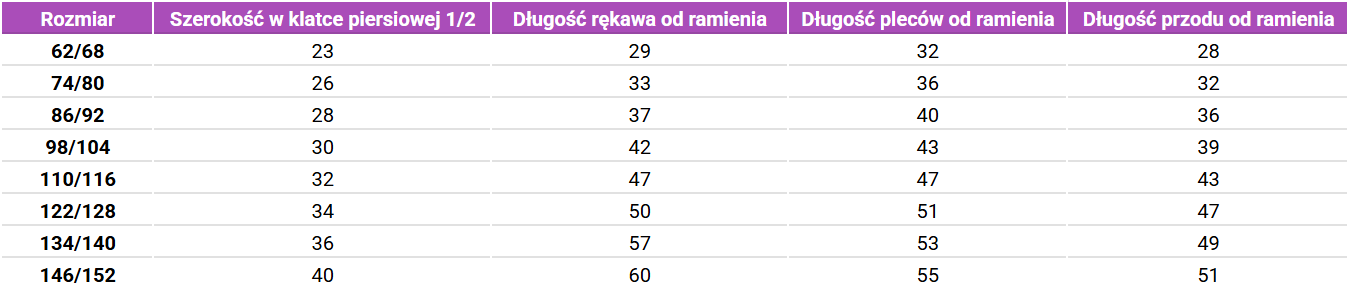 Tabela rozmiarów Geggamoja dziewczęcy strój kąpielowy z długim rękawem